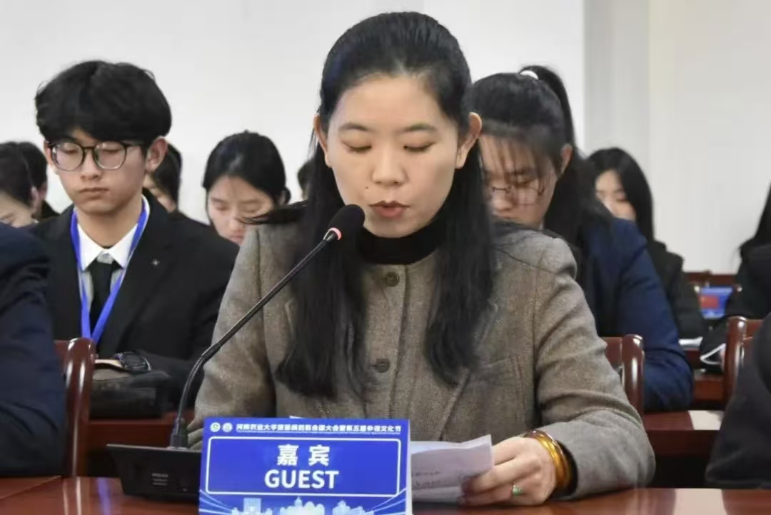张庆彬结合我校的农业特色,鼓励学子在模联舞台上将专业知识与全球议题相结合,深入探索粮食安全等议题的解决方案,在运用外语阐述观点、协商共识的过程中,实现语言能力向国际交往能力、全球领导力的转化。