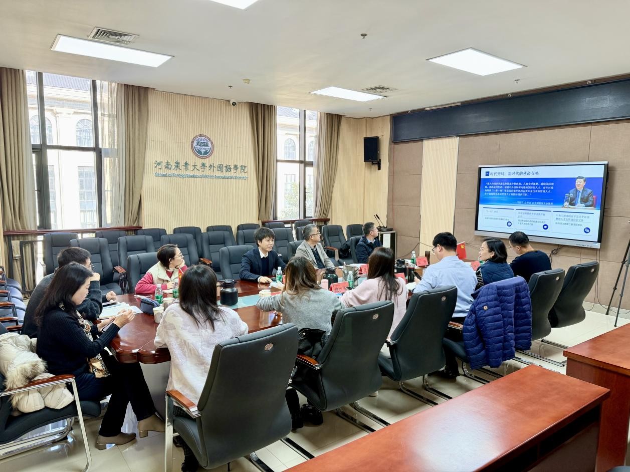 ,开展学术交流。李圣杰首先以“外语拔尖创新人才培养模式的探索与实践”为题作专题报告,随后与肉漫屋