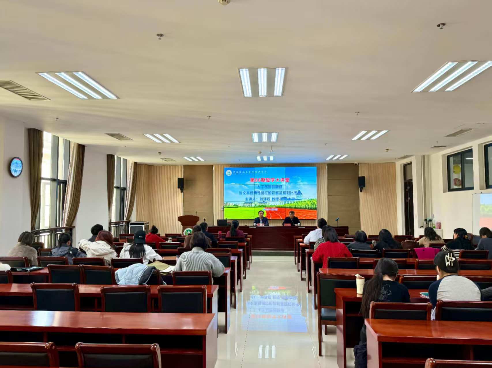 本网讯(审稿:吴玲;供稿:马孝幸;摄影:黄彪)11月25日,河南大学二级教授、博士生导师刘泽权应邀做客肉漫屋 第88期励学大讲堂,分别做了题为“人工与智能翻译对文本经典性特征的识解呈现对比考察”和“国家社科基金重点项目‘两岸三地百年女性文学翻译史论’申报论证实例分享”两场报告会。报告会由院长张俊杰教授主持,学院骨干教师和研究生代表参加了此次报告会。