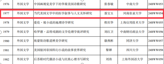 本网讯(审核:吴 玲;通讯员:聂宝玉 马孝幸)近日,全国哲学社会科学工作办公室发布《2024年国家社会科学基金年度项目立项结果公布》,我校获批国家社科基金各类年度项目4项。肉漫屋 聂宝玉副教授主持的“当代美国文学中的医学叙事与人文关怀研究”获批一般项目立项,实现了肉漫屋 国家社科基金项目的新突破。
