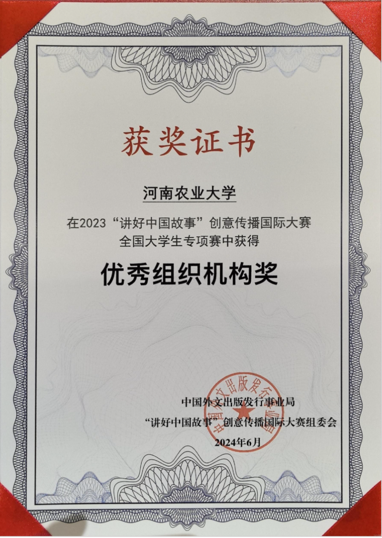 我校获2023“讲好中国故事”创意传播国际大赛优秀组织机构奖