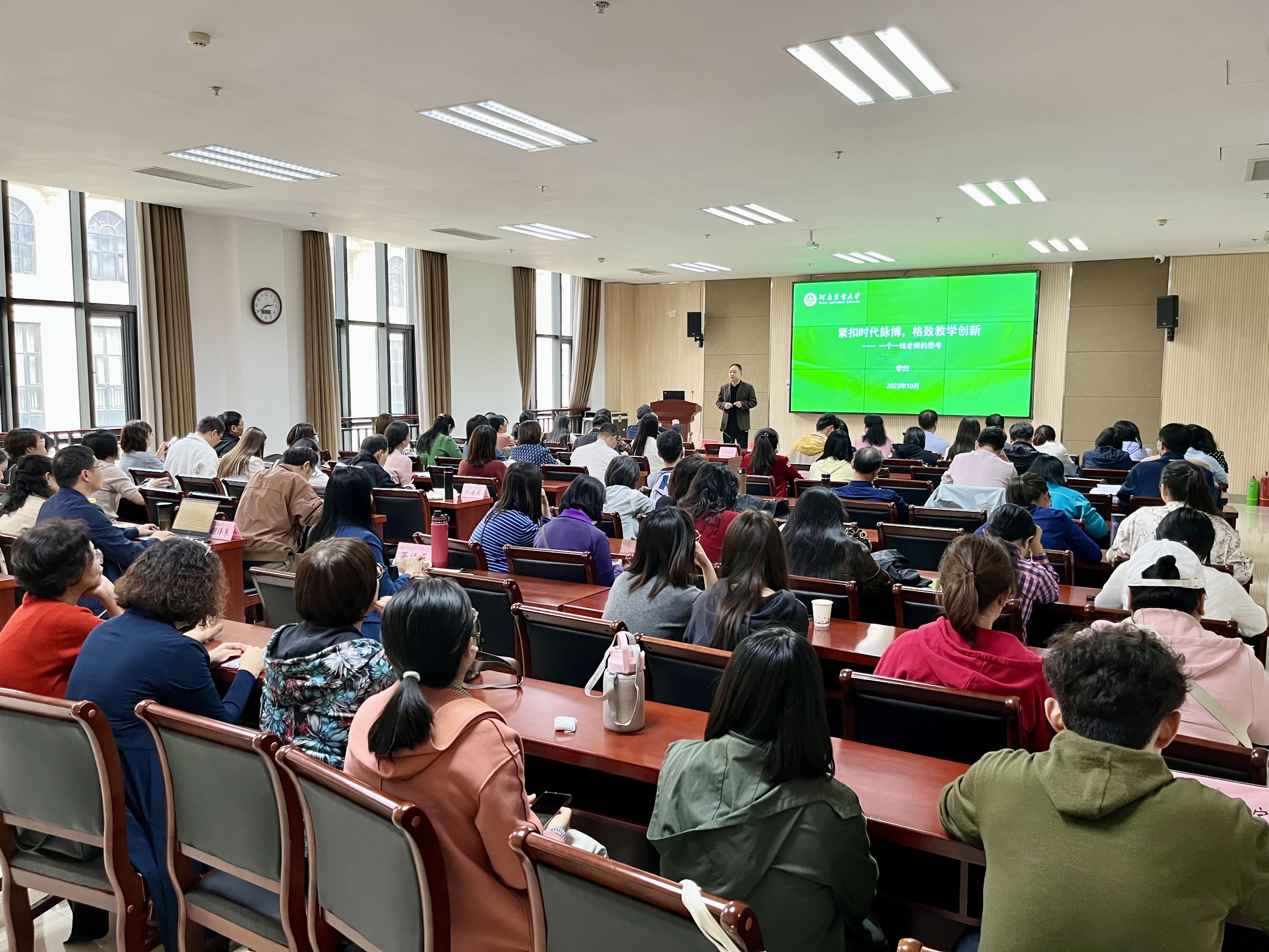 会上,李辉做了《紧扣时代脉搏,格致教学创新——一个一线教师的思考》的专题报告。院长张俊杰首先对新进教师表示欢迎,并从师德师风入手,和大家分享了成为一名好老师的几点思考:践行立德树人根本任务,做学生成长的引路人;夯实专业基本功,做学生成才的奠基人。牢记为党育人,为国育才的初心和使命,与时俱进,树立终身学习理念,不断提升授课艺术水平,做中西文明的传播者,做智慧教学的践行者。