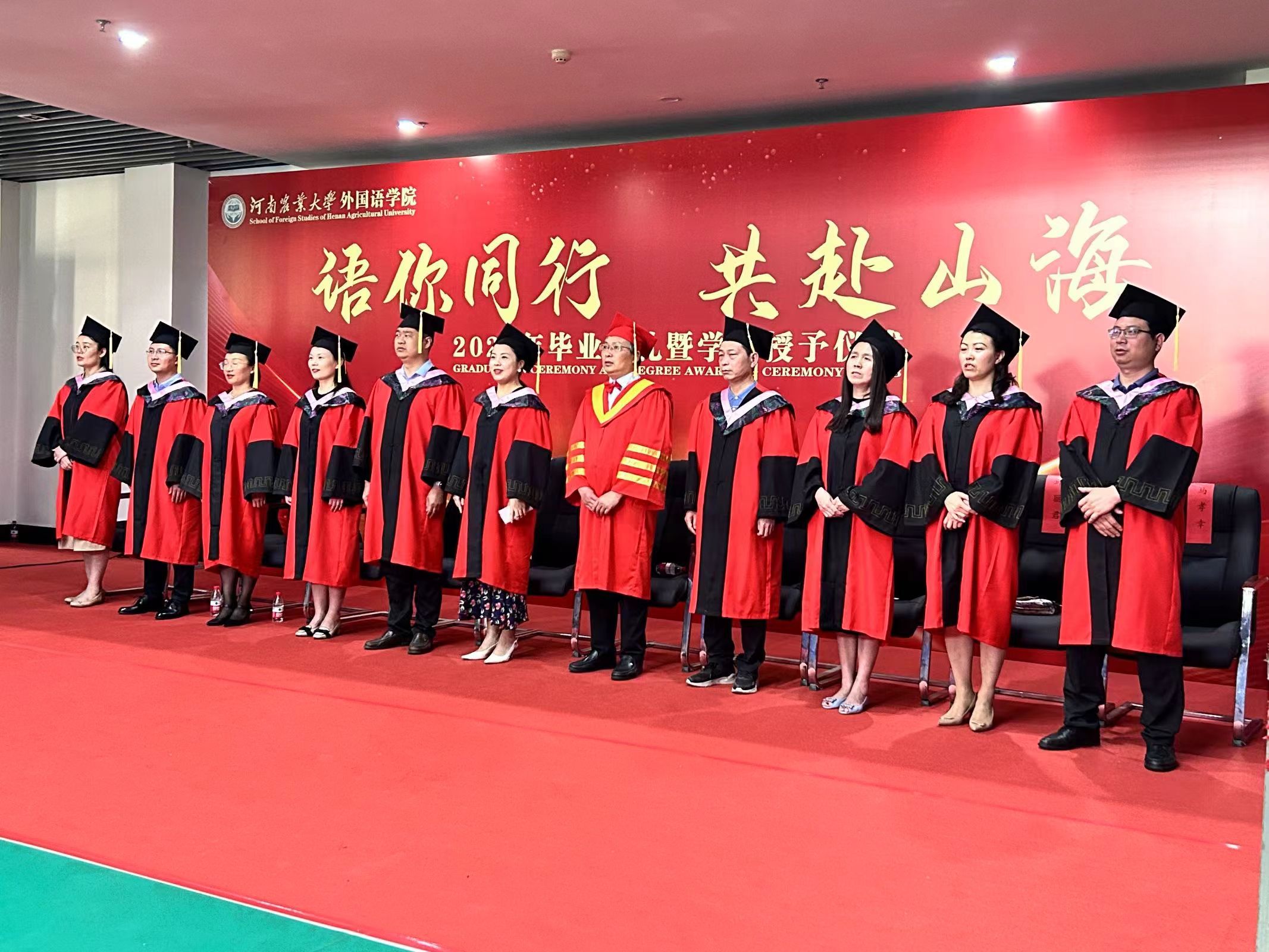 2023年毕业典礼暨学位授予仪式在龙子湖校区繁塔楼A座隆重举行。323名2023届毕业生顺利完成毕业,即将奔向远方,扬帆起航。院党委书记王燕萍、院长张俊杰携院领导班子成员及院学位评定委员会委员身着学位服出席仪式。