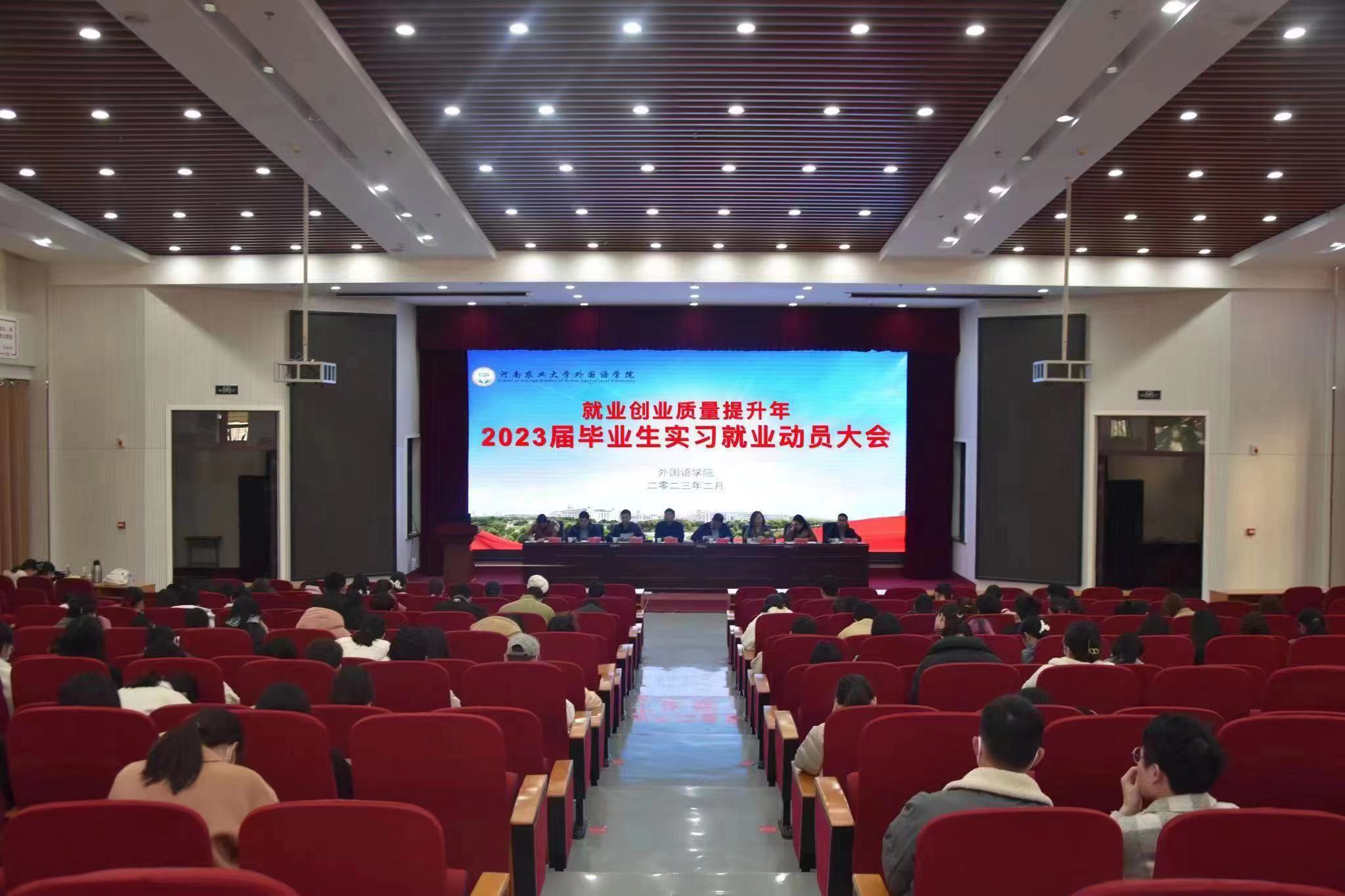 本网讯(审稿:王启佩 供稿:冯超 张仪婷 )2月27日下午,学院在龙子湖校区繁塔楼大教室1召开了2023届毕业生实习动员大会。会议由院党委副书记王启佩主持,院长张俊杰携院领导班子成员、各系部室主任、毕业班辅导员和2023届全体毕业生出席了此次会议。