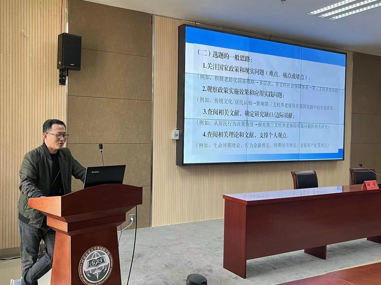 韩威以“SSCI论文发表与科研项目申报的经验交流”为题,从论文选题、研究方法、投稿几个方面分享了自己论文发表及科研项目申报的技巧和成功经验。报告指出,选题是论文撰写的第一步也是最重要的一步,应该突出学术边际贡献或对接现实应用问题,结合国家政策和现实问题,观察政策实施效果和应用实践问题,并要广泛的阅读文献,确定研究对象并结合个人研究兴趣在特定方向深耕。报告还就使用先进统计方法研究语言学提供了新思路。