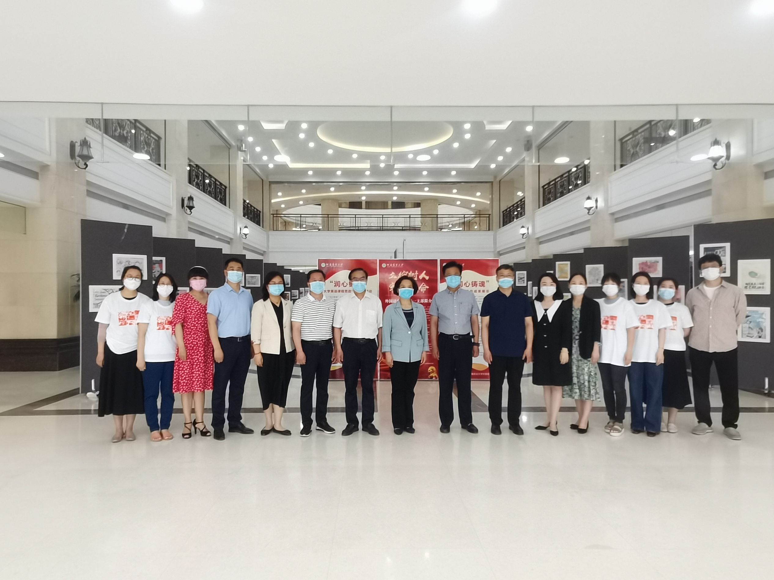 大英教学部以“艺”战疫英文海报展在龙子湖校区图书馆一楼大厅举行,副校长尹新明携教务处、学工部、研工部、校团委、图书馆等部门主要负责同志莅临现场并宣布开幕。活动由肉漫屋