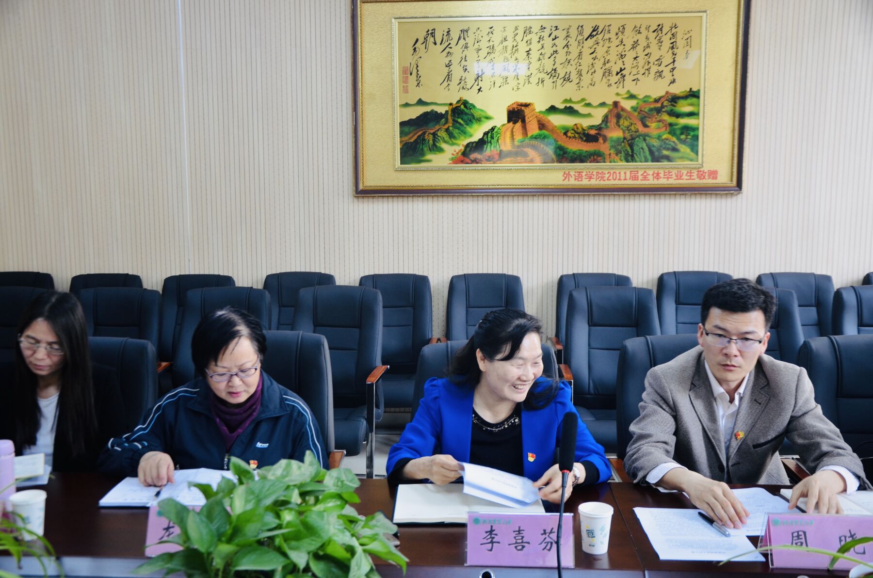 院长李喜芬汇报了学院的基本情况、特色亮点和当前制约学院发展的主要问题。院党委副书记周晓从政治建设、思想建设、组织建设等方面汇报了党建工作。魏少敏、张莉、邱丽君等教授、系部主任围绕学科发展、人才引进、机制创新、实践教学等方面进行了发言,大家开诚布公,为学校事业发展积极献言建策,表达了进一步夯实基础教学,为学校双一流建设提供语言支撑的决心。