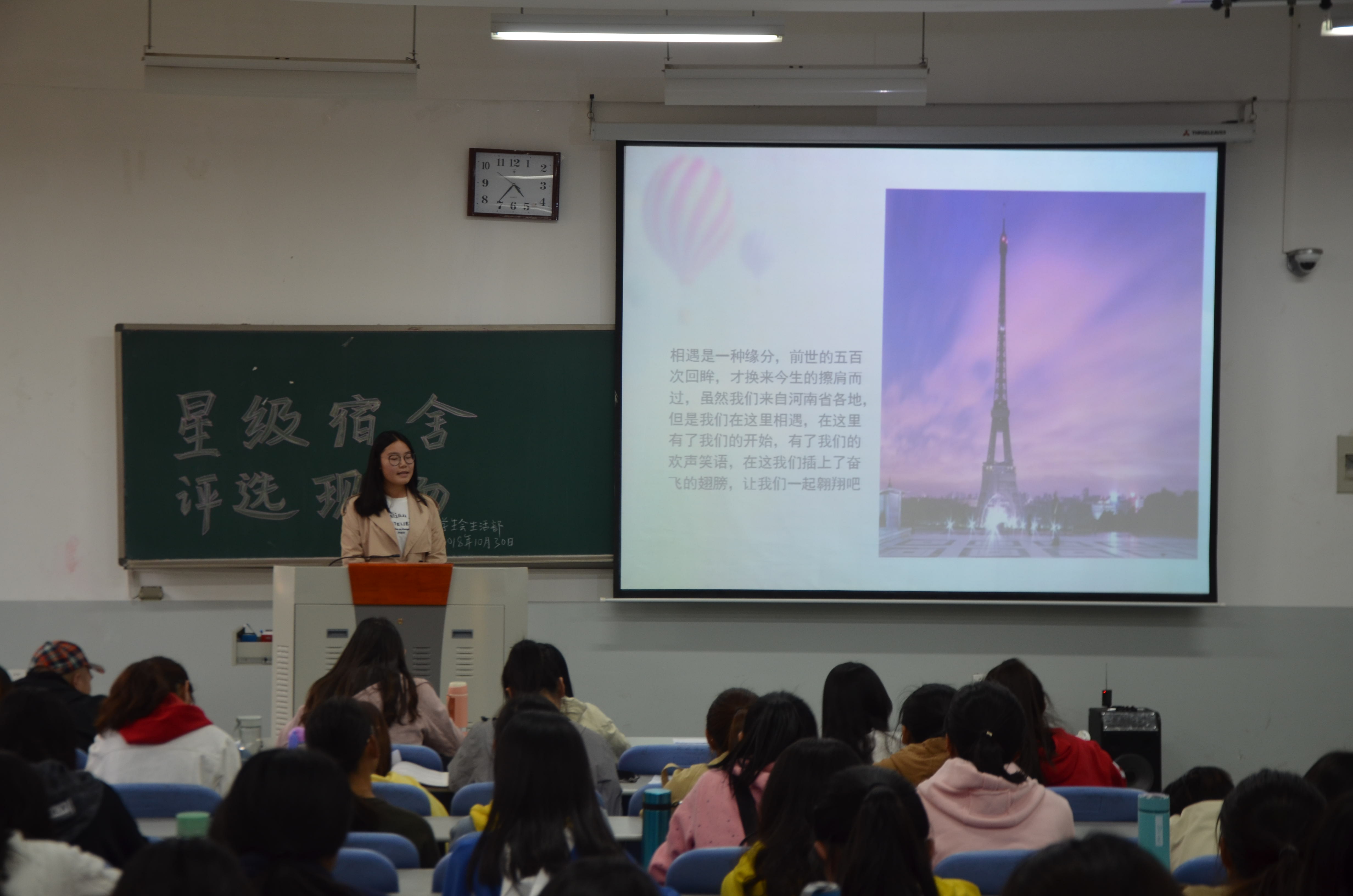星级宿舍评选大赛。学院主要学生干部出席了此次活动并担任评委。本次比赛共24个宿舍参选。