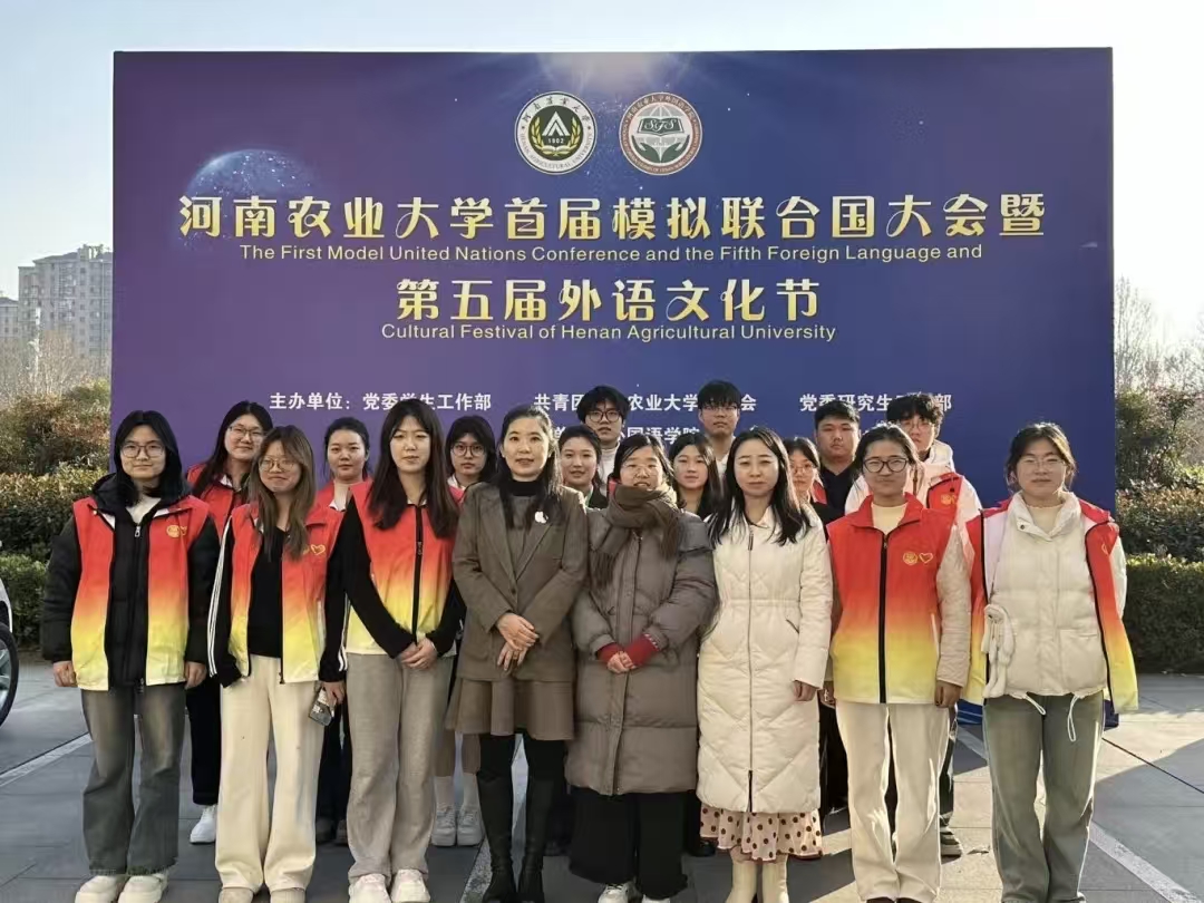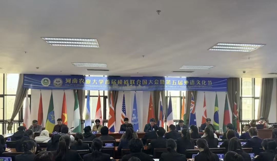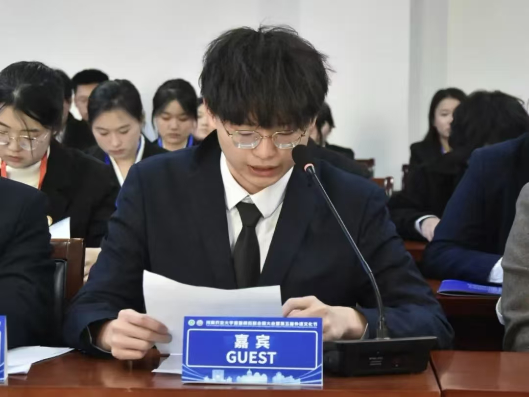 首届模拟联合国大会暨第五届外语文化节”。校党委副书记、工会主席邹松涛、校党委学生工作部部长徐峰、校团委书记雷雯、研究生工作部部长郭治鹏、郑州大学外国语与国际关系学院翻译硕士管理中心主任张庆彬、肉漫屋