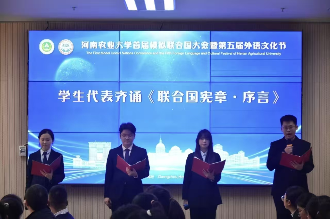 主席团代表朗诵《联合国宪章·序言》,学生代表演唱《和平颂》,传递对和平发展、文明互鉴的向往,展现家国情怀与国际视野。