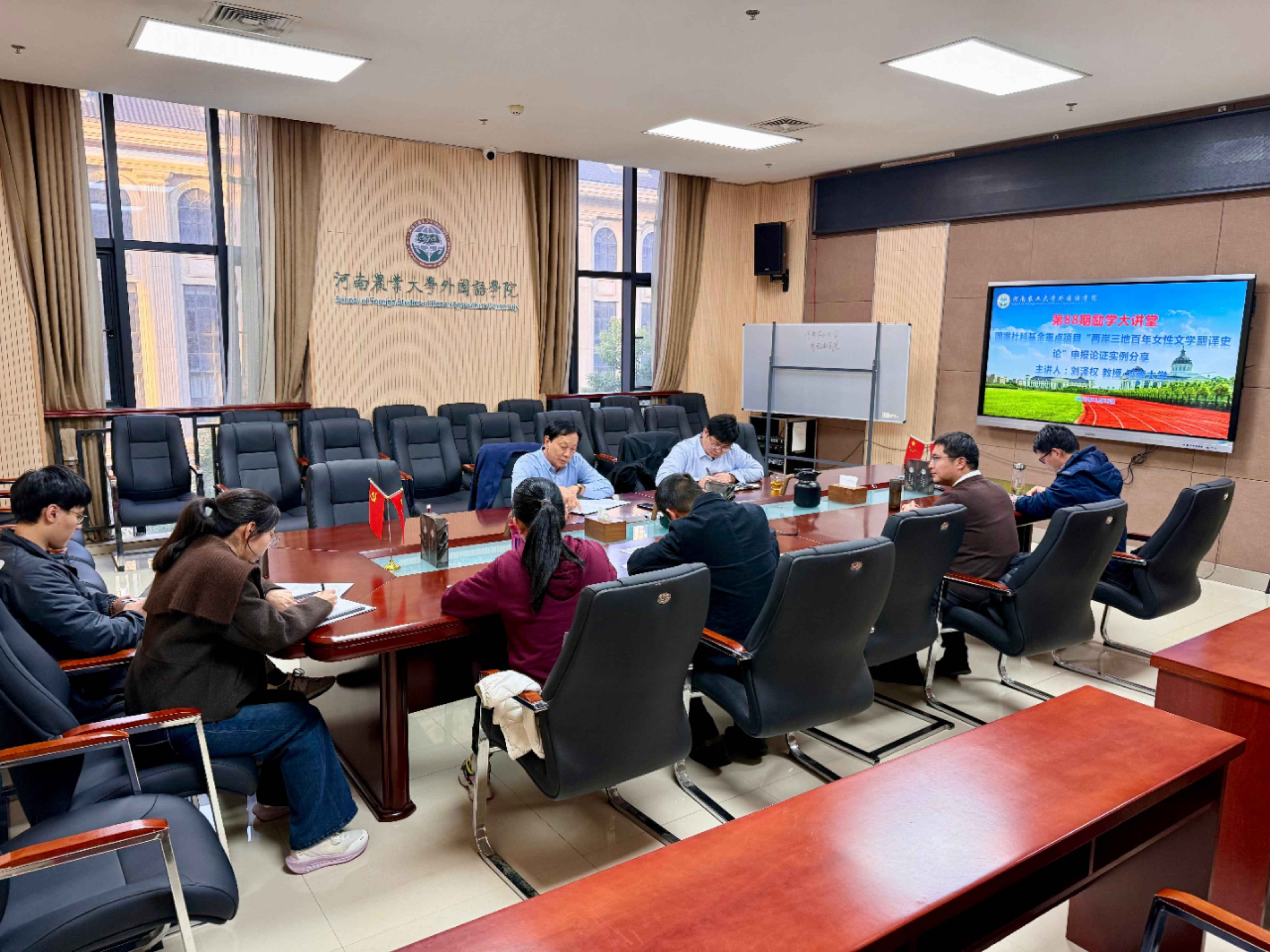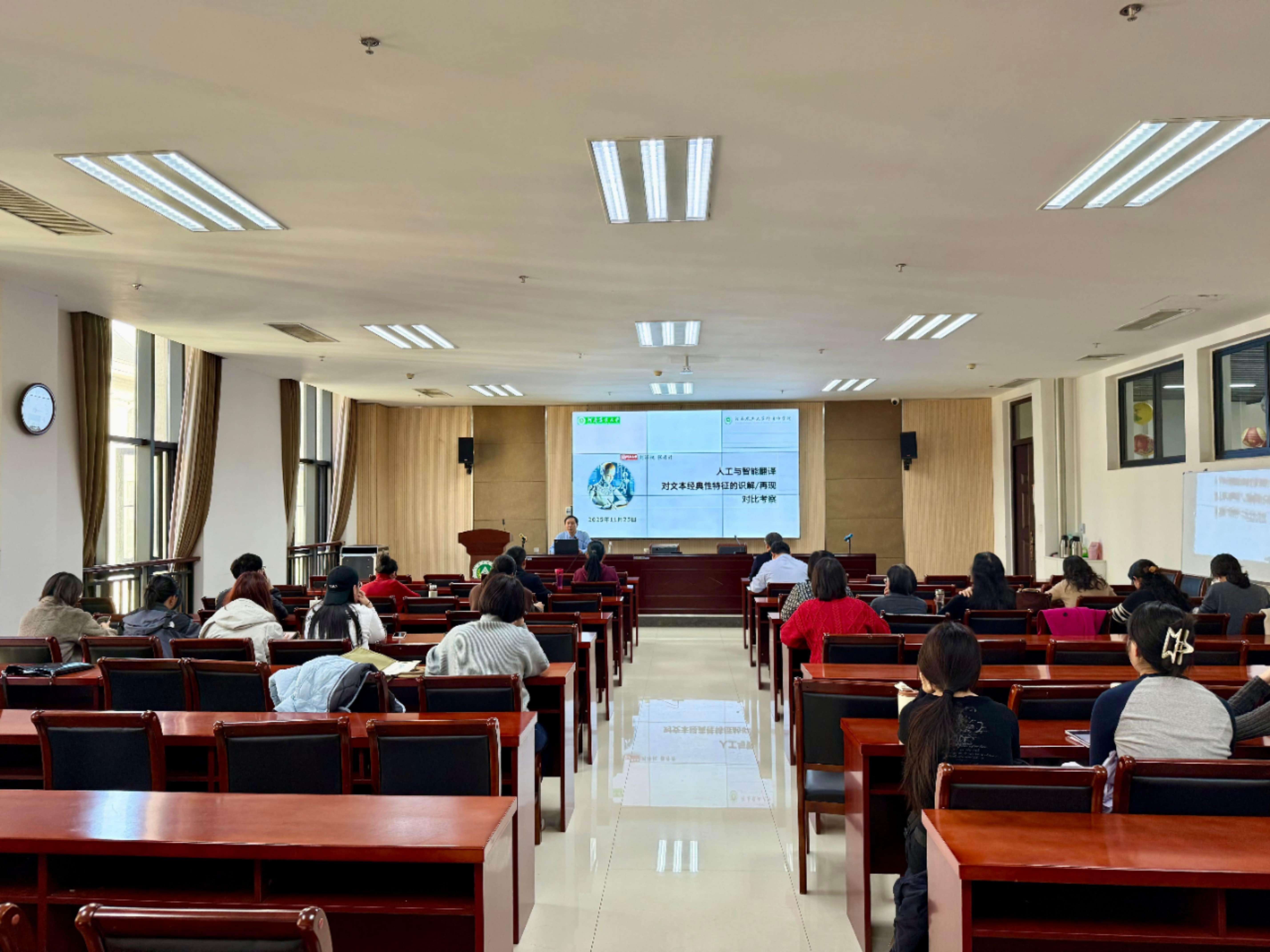 本网讯(审稿:吴玲;供稿:马孝幸;摄影:黄彪)11月25日,河南大学二级教授、博士生导师刘泽权应邀做客肉漫屋 第88期励学大讲堂,分别做了题为“人工与智能翻译对文本经典性特征的识解呈现对比考察”和“国家社科基金重点项目‘两岸三地百年女性文学翻译史论’申报论证实例分享”两场报告会。报告会由院长张俊杰教授主持,学院骨干教师和研究生代表参加了此次报告会。