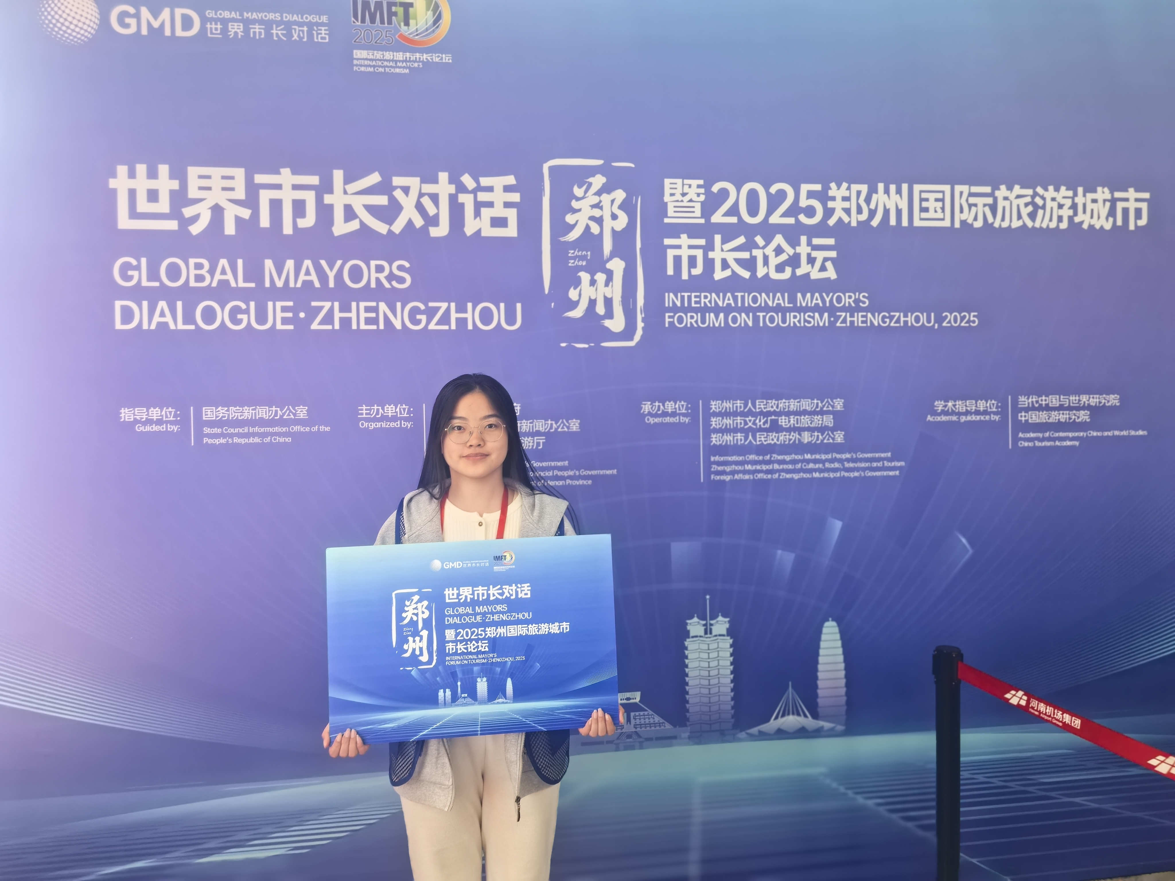 本网讯(审核:吴玲;供稿:马孝幸;摄影:杨睿、欧晓琦等)2025 年 10 月 21 日至 26 日,肉漫屋 16 名翻译硕士研究生及英语、翻译专业本科生,圆满完成世界市长对话・郑州暨 2025 郑州国际旅游城市市长论坛的志愿服务工作。本次论坛以推动郑州国际友好城市与国内外旅游城市互联互通为目标,深化跨境旅游、人文交流及产业经贸合作,向世界充分展现 “机遇中国” 的独特魅力。论坛由国务院新闻办公室指导,当代中国与世界研究院、郑州市人民政府新闻办公室主办,郑州市文化广电和旅游局、郑州市人民政府外事办公室、河南机场集团等单位承办,中国旅游研究院提供学术指导。