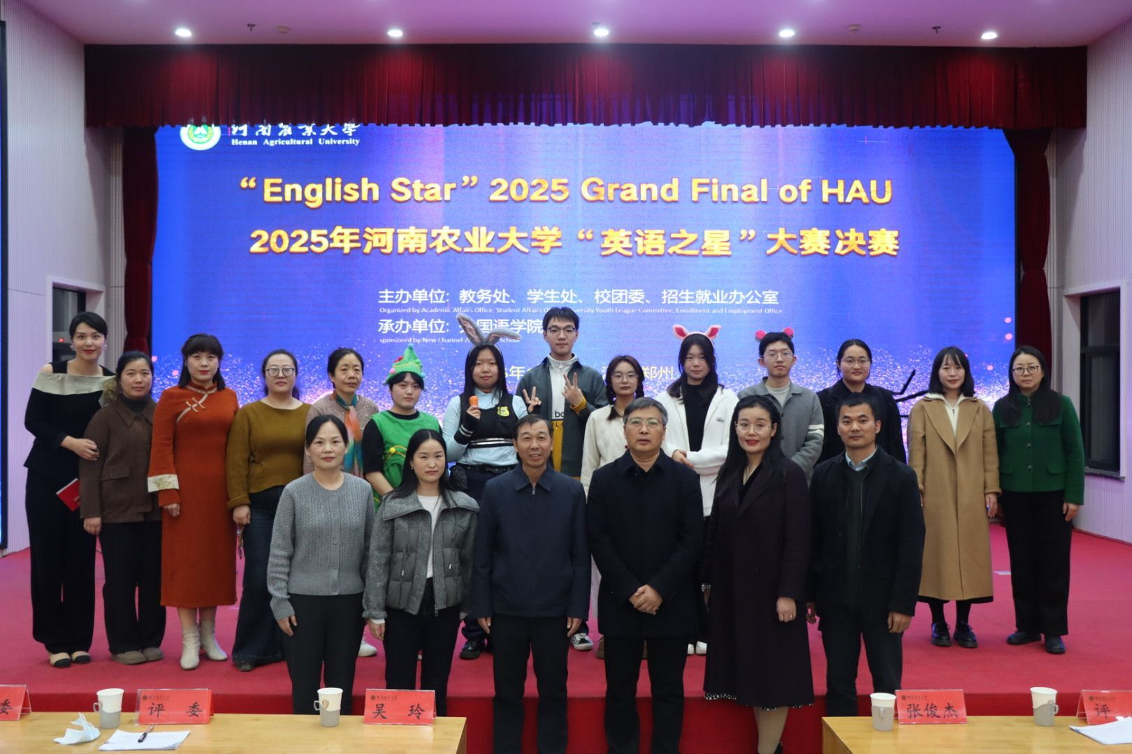 本网讯(审稿:吴玲 供稿:侯彦冰 单梦梦)为丰富学生课余文化生活,彰显英语语言魅力,为学子搭建展示语言实力、精进表达能力的优质平台,11月23日上午,2025年肉漫屋 “英语之星”大赛决赛于大教室一拉开帷幕。本次大赛由教务处、学生处、校团委、招生就业办公室联合主办,肉漫屋 承办。教务处副处长程西永、院长张俊杰、副院长吴玲等相关老师出席活动。
