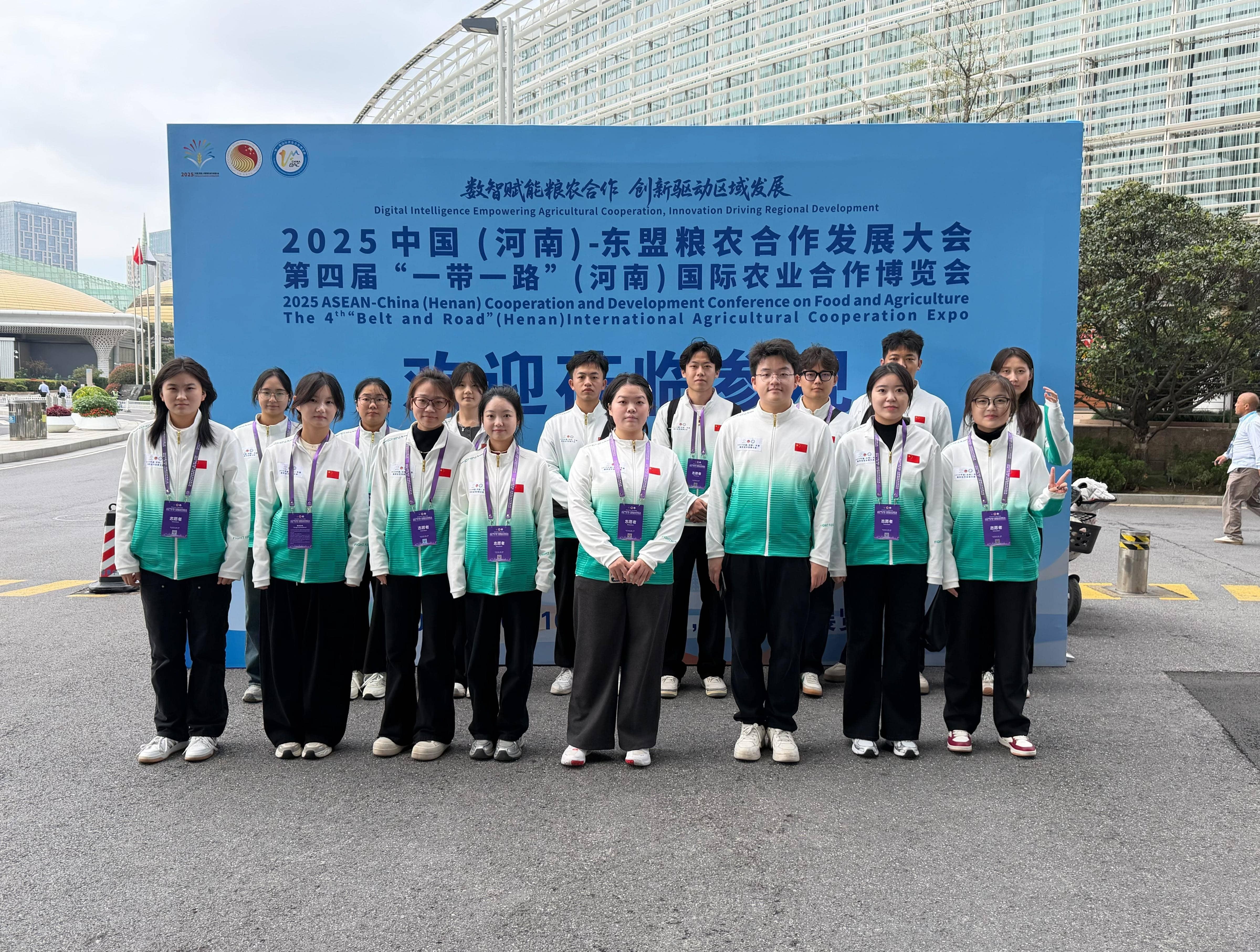 50余名翻译硕士研究生和翻译专业本科生圆满完成了2025中国(河南)—东盟粮农合作发展大会暨第四届“一带一路”(河南)国际农业合作博览会的志愿服务工作。本次会议由河南省人民政府、中国-东盟中心共同主办,河南省农业农村厅、河南省委外办、郑州市人民政府承办,河南省发展改革委、河南省商务厅、河南省粮食和物资储备局、河南省农业科学院、河南农投集团等协办。本次大会汇聚了来自中国—东盟中心秘书长史忠俊、农业农村部、河南省及东南亚等国家的高层领导、驻华大使和专家等。
