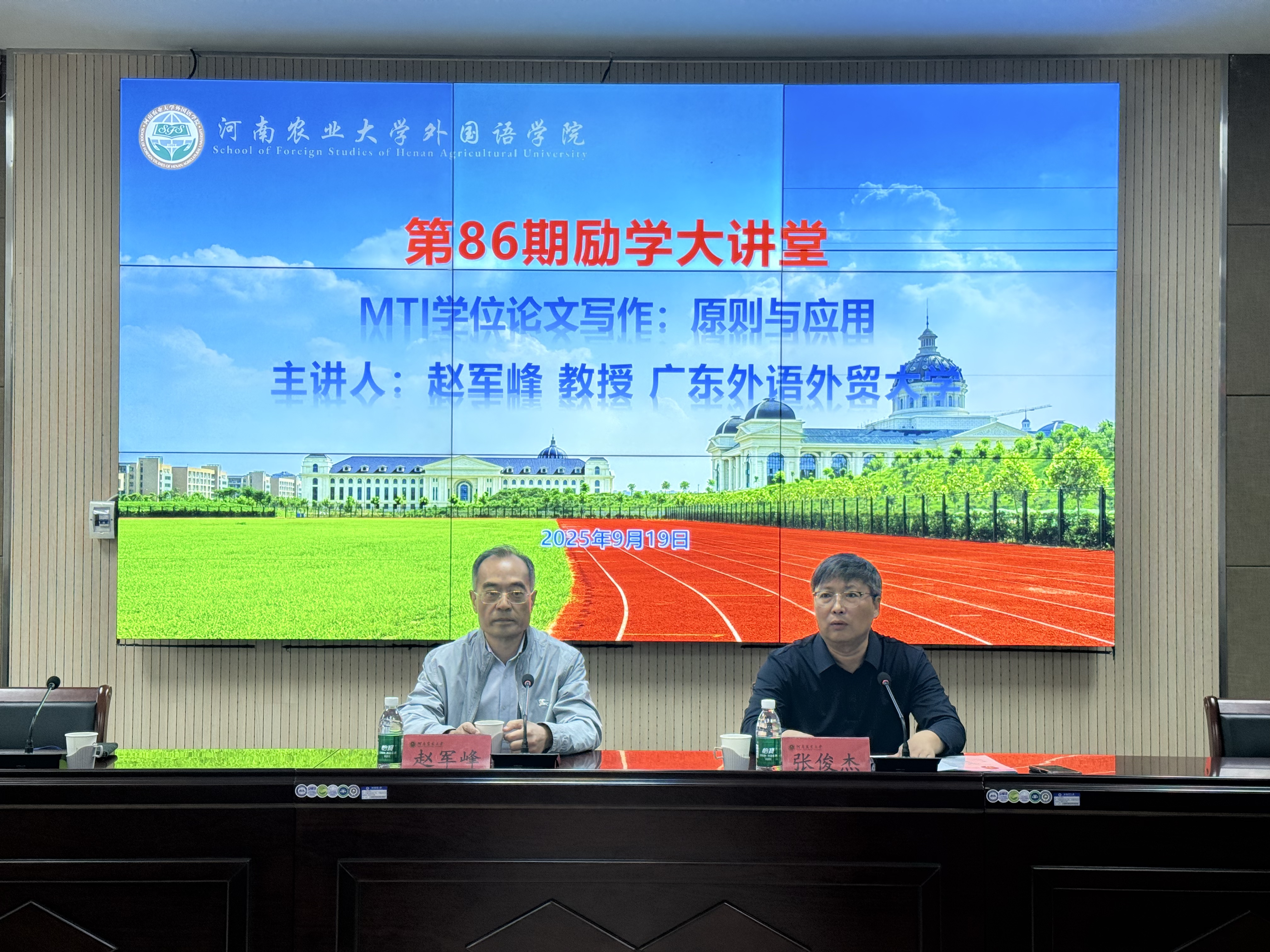 第86期励学大讲堂,分别做了题为“MTI学位论文写作:原则与应用”和“法律文学外译重构法治中国形象研究:问题与路径”两场报告会。报告会由院长张俊杰教授主持,硕士生导师和全体研究生、本科生代表参加了此次报告会。