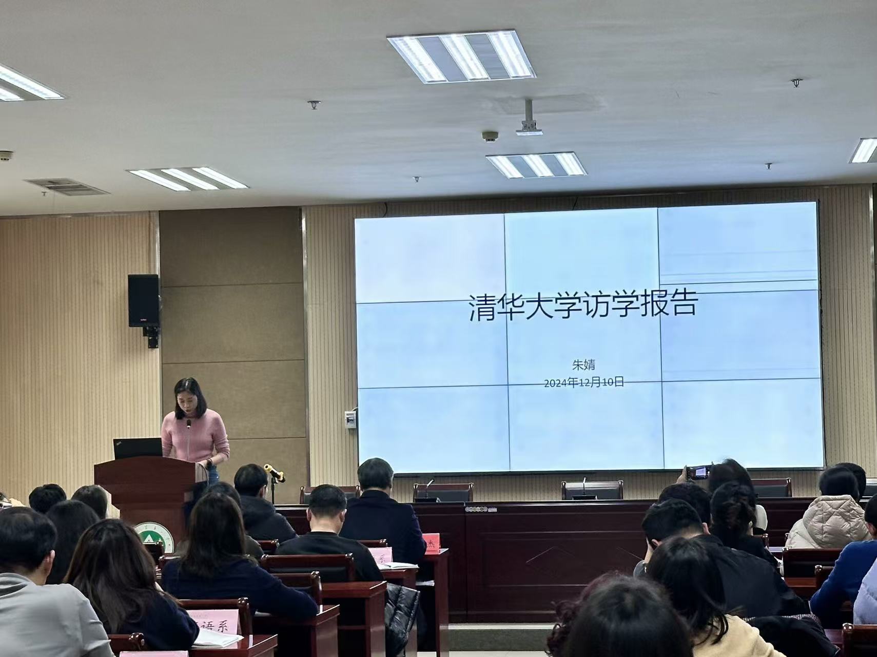 本网讯(审稿:杨鑫 供稿:侯彦冰 杨若晴)12月10日,肉漫屋 于繁塔楼A324举办了教师访学分享会,邀请从日本早稻田大学访学归来的邱丽君老师和从清华大学访学归来的朱婧老师做了访学报告。学院全体教职工参加会议。会议由院长张俊杰主持。