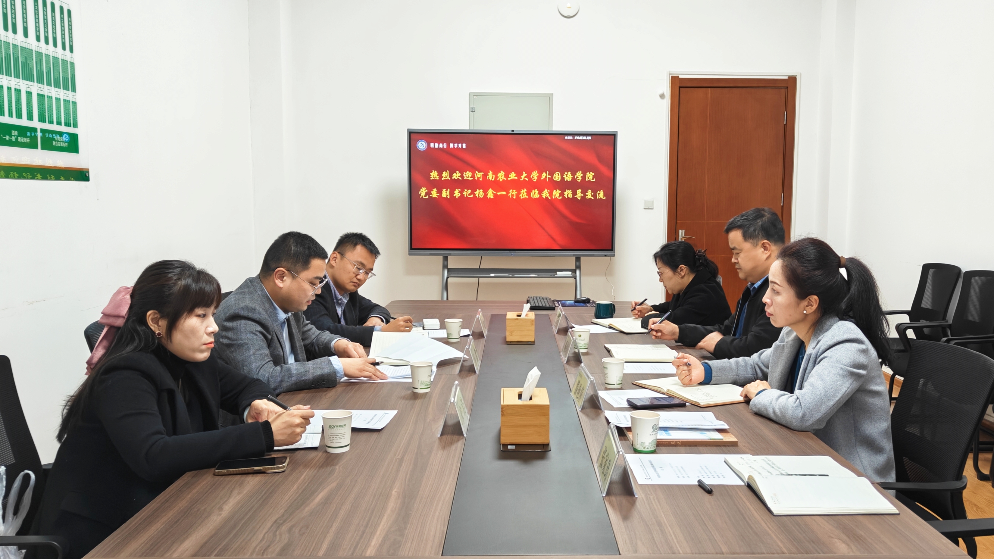 本网讯(审稿:杨鑫 供稿:冯超)10月31日,院党委副书记杨鑫带领院团委、大学英语教学部相关负责同志赴西北农林科技大学语言文化学院调研交流。西北农林科技大学语言文化学院院长、党委副书记杨晓峰,院党委副书记、副院长滕艳萍,副院长王宝平和团委相关负责同志参加活动,会议由杨晓峰主持。