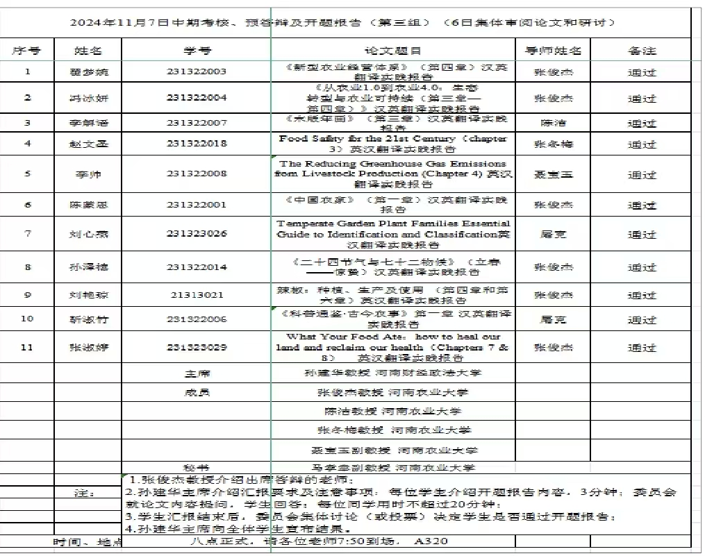 肉漫屋 举行2024年英语笔译专业研究生学位论文开题报告及中期考核论证会