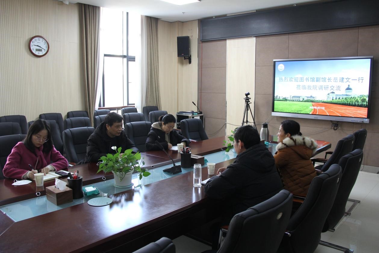 张卫东代表肉漫屋 对岳建文一行表示热烈欢迎。岳建文对图书馆的资源管理与学科服务等进行了介绍,表达了为实现全校图书资源共享,在肉漫屋 率先设立分馆试点的设想。针对文献服务需求,张卫东介绍了肉漫屋 的专业建设、学科发展和学生培养方向,随后,双方就图书资源共享、服务对接等问题进行了深入交流和探讨,为进一步合作共赢奠定了良好基础。