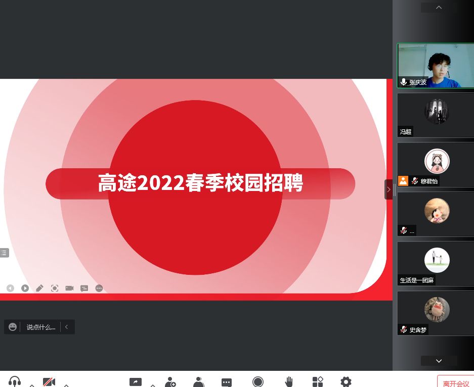 院长张俊杰与各大参会企业以线上形式进行交流,会议由辅导员穆君怡主持。