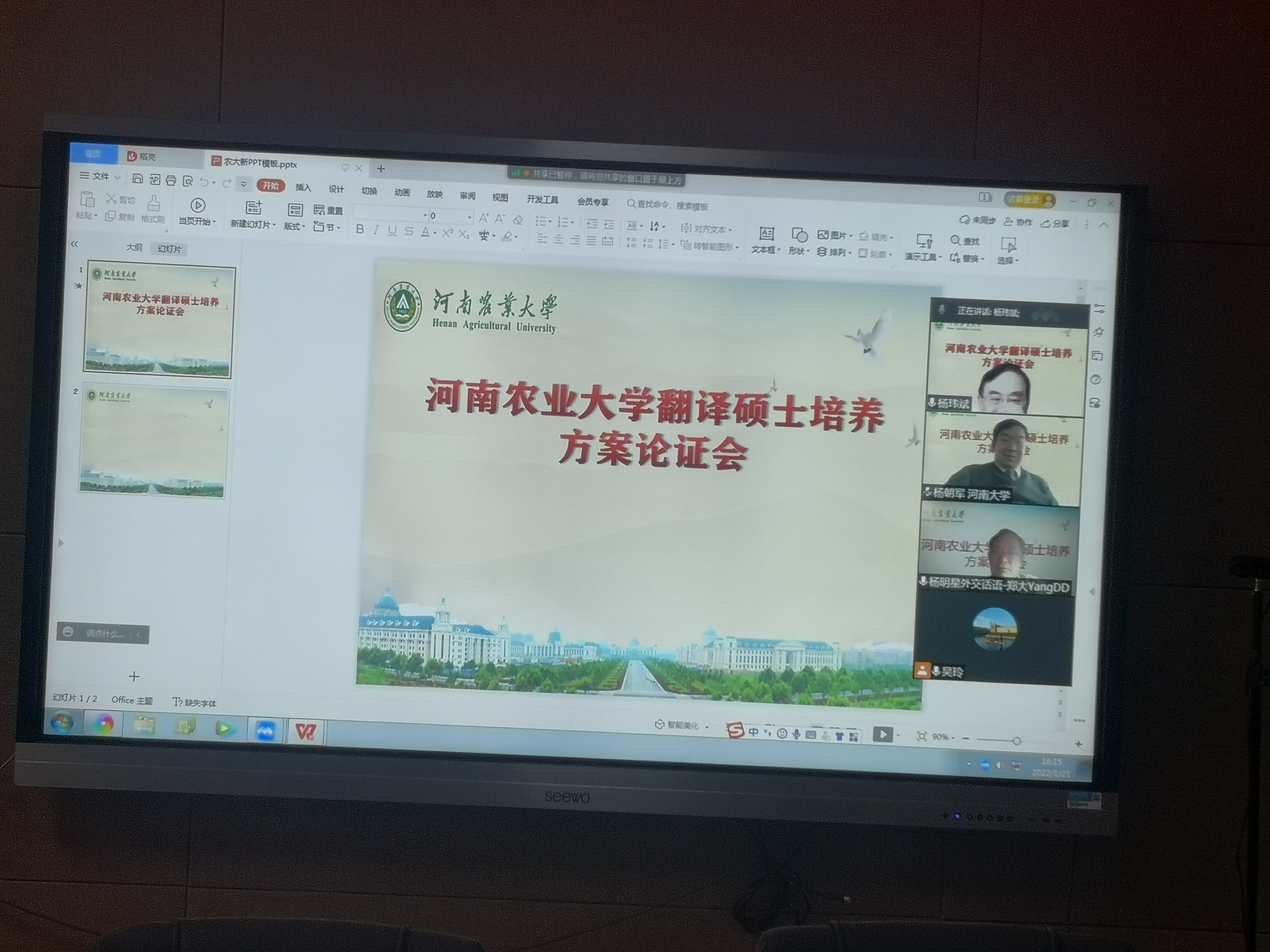 (通讯员:马孝幸)日前,翻译硕士专业学位(简称MTI,下同 )研究生培养方案修订论证会在繁塔楼A320会议室举行。河南省委外事办原一级巡视员、副主任杨玮斌、河南大学外语学院院长杨朝军教授、郑州大学中国外交话语研究院院长、杨明星教授担任论证会专家成员。肉漫屋