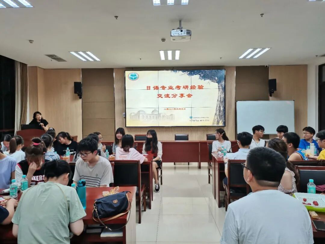于龙子湖校区繁塔楼A324会议室召开了日语专业考研座谈会。日语系主任邱丽君、教师张建宇、辅导员穆君怡携18级全体日语专业学生参会。