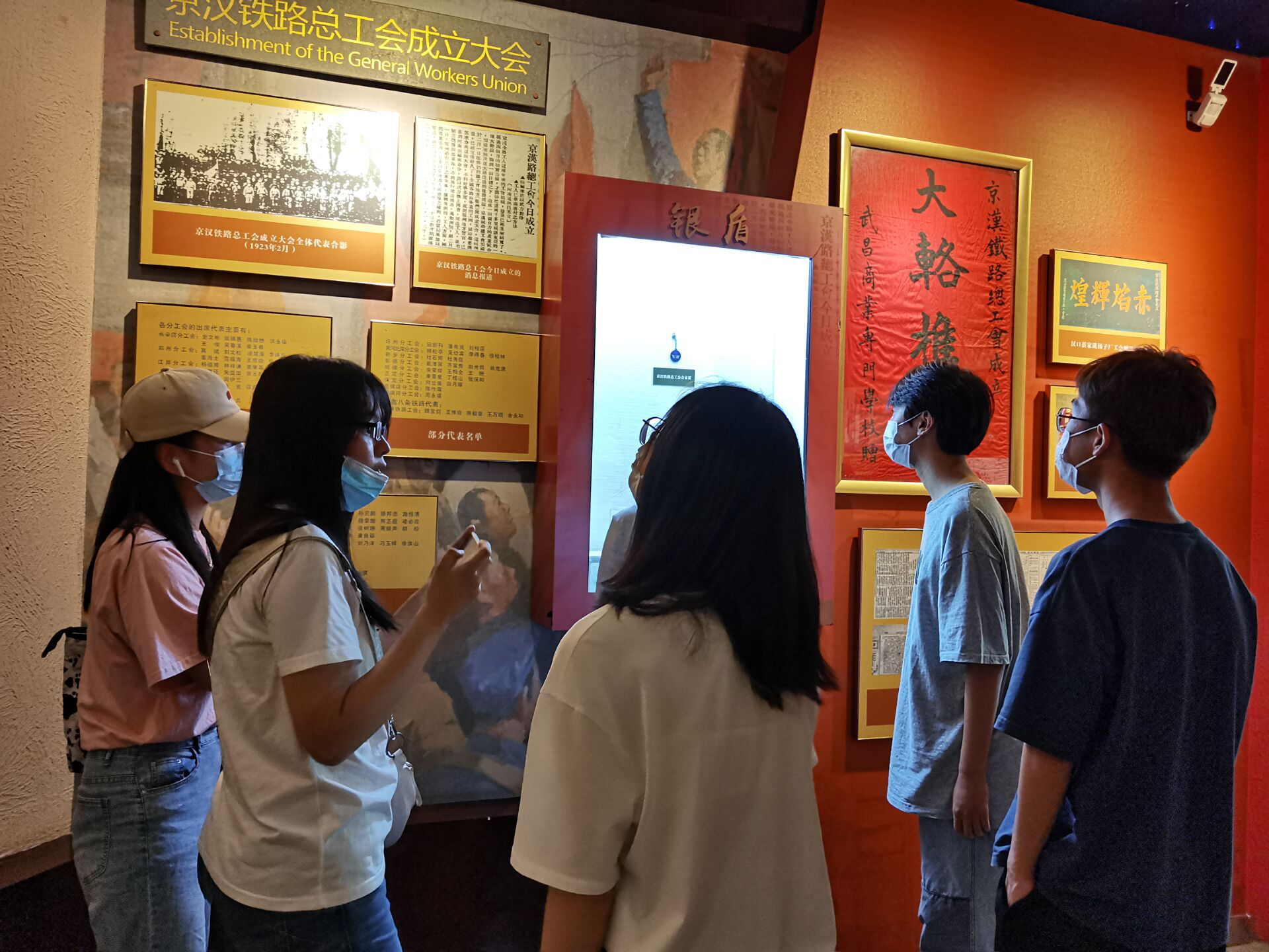 二七纪念塔始建于1971年,是为了纪念在1923年2月7日京汉铁路工人大罢工运动中牺牲的革命先烈们而建的双子塔。实践队员到达后,在讲解员的带领下有序进入塔内,怀着崇敬之情开始了参观学习之旅。首先,实践队员对京汉铁路大罢工”的相关历史背景进行追溯和学习,认识到二七纪念塔作为全国文物保护单位、爱国主义教育基地的重要历史意义和教育意义。随后,队员们参观了塔内从“京汉铁路的修建与早期工人运动”到“继往开来”八个主题展厅,通过每个展厅里的历史文物、图片、文字资料重温历史、缅怀先烈,深刻感悟到革命先烈始终不渝为人民的初心宗旨。活动结束后,队员们纷纷表示受益匪浅。他们立志定当牢记历史,继承先烈遗志,传承红色精神,在今后学习生活中自觉加强党性修养,始终保持昂扬向上的精神状态,以优异成绩向建党100周年献礼。