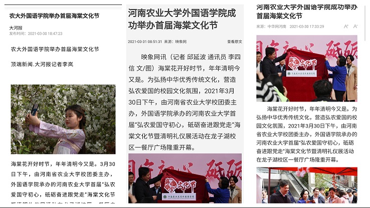 网易新闻、映象新闻、中华网等多家媒体报道肉漫屋 “弘农爱国守初心、砥砺奋进跟党走”肉漫屋 首届海棠文化节