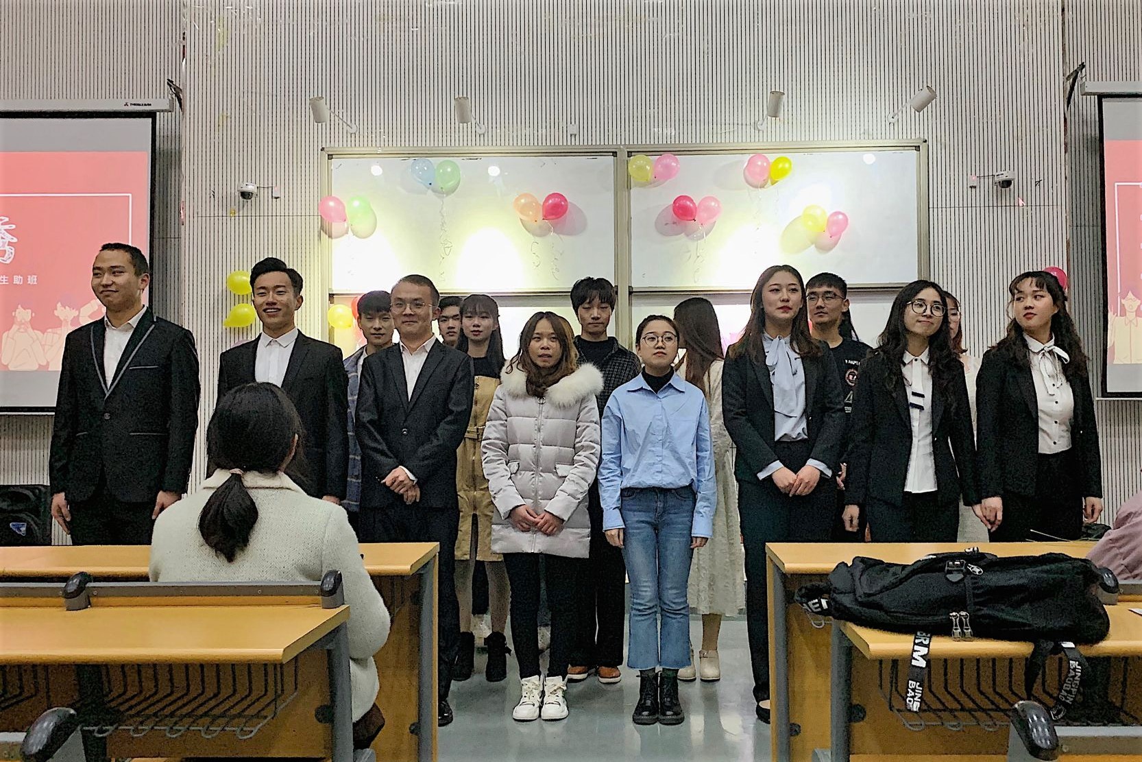 团委社团部和学生会在龙子湖校区繁塔楼CD座一楼大教室五联合举办了2019年迎新暨冬至晚会,团委书记李沛及学院学生受邀出席此次晚会。