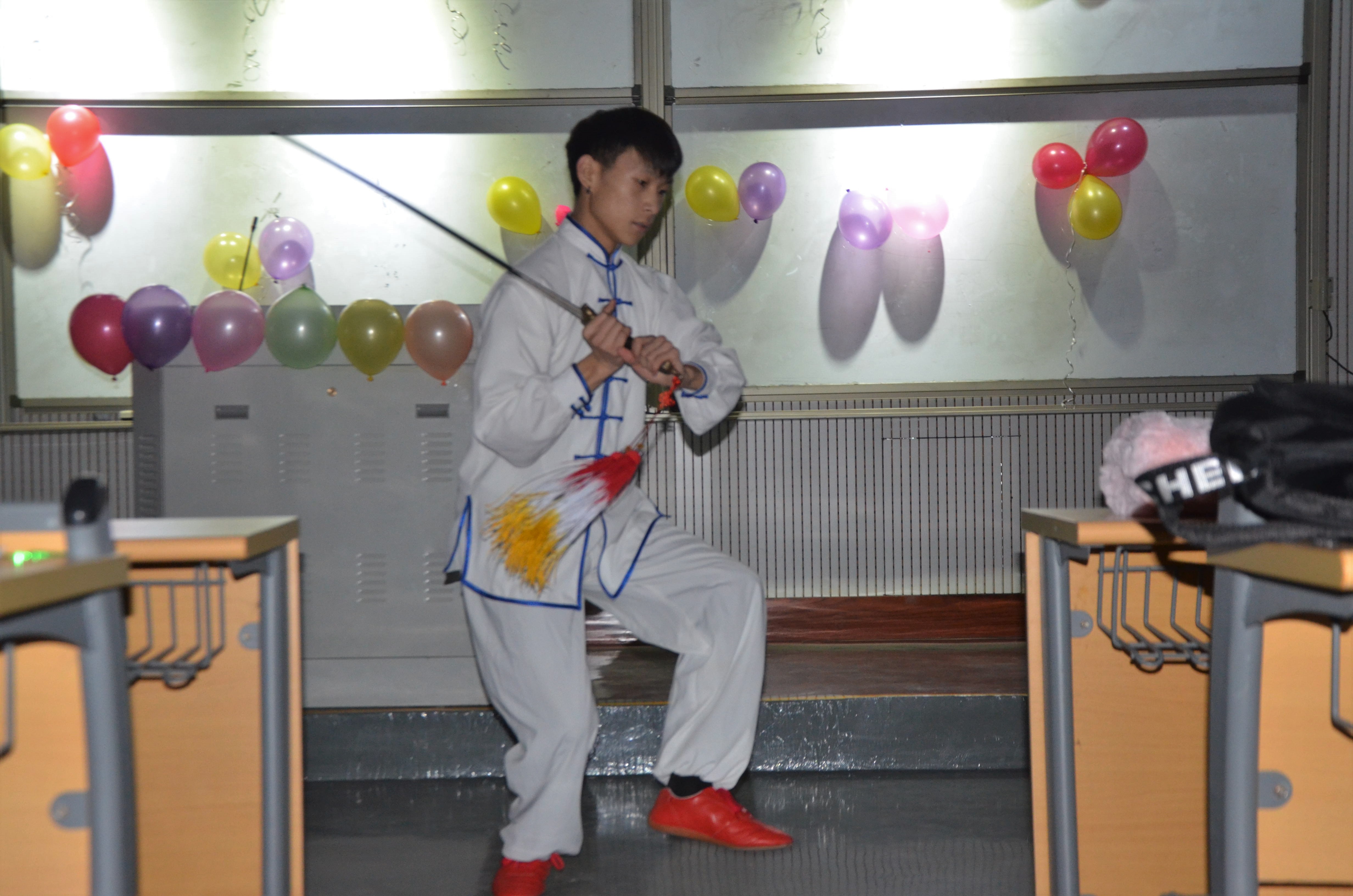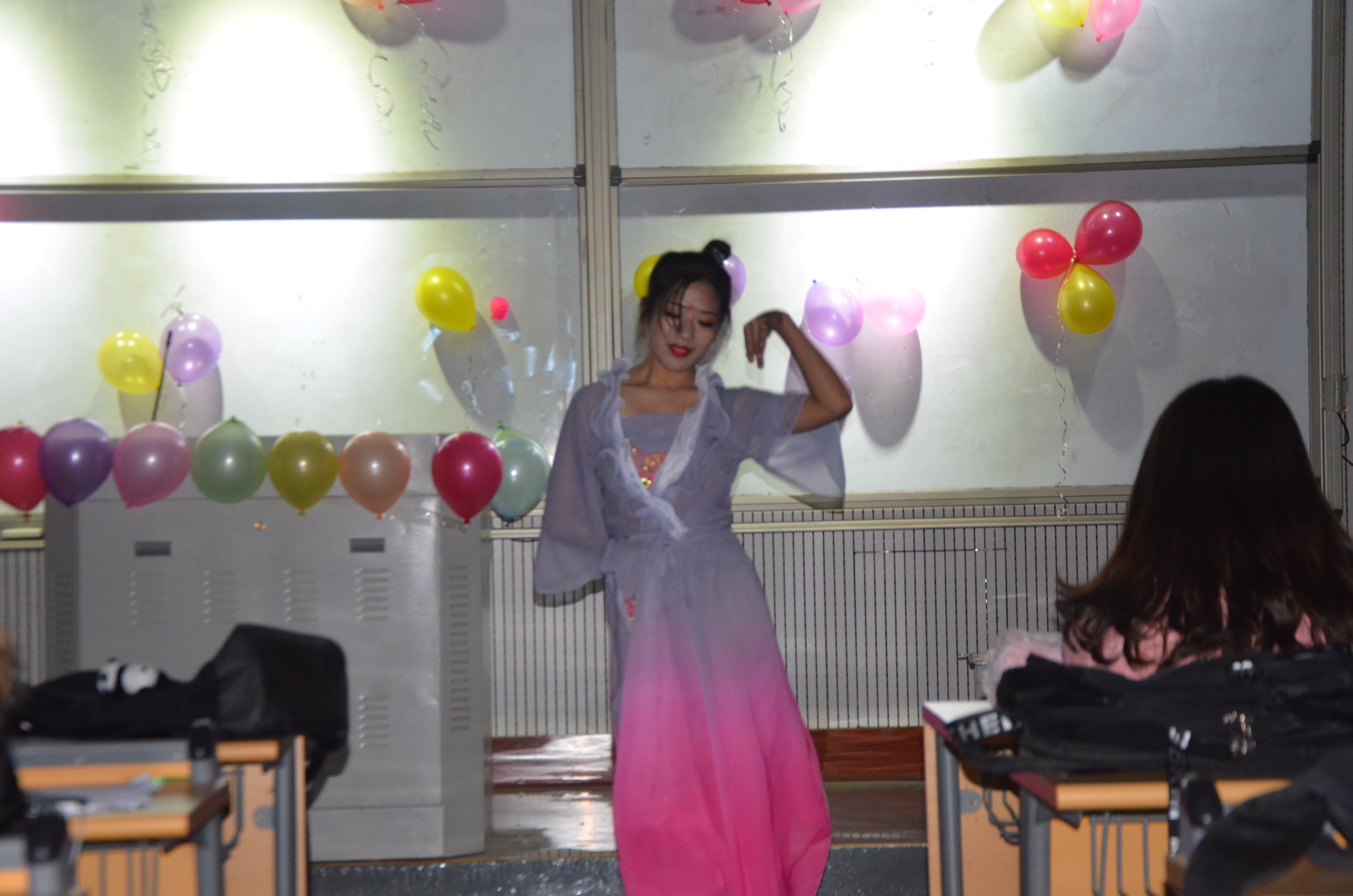 其中,19级翻译二班曹凌凡通过轻盈柔美的舞姿向大家阐释了《点绛唇》中“最是人间留不住,朱颜辞镜花辞树”的境界;18级吴名团、张辰龙带来的英语和日语双语版的《说好不哭》,将一段“成全”和“约定”的故事娓娓道来,引人入胜;小品《知识就是力量》以诙谐幽默的表演,在带来欢笑的同时也让人深思知识背后的美好与不易,向大家展示了何为“知识就是力量”;18级侯恺怡为大家展示了一段极具中国特色的太极剑表演,动静开合,刚柔并济,挥洒自如,一意一念,一举一动,尽在其掌握之中;一曲吉他弹奏、几曲好年华,G调音乐社为在场观众演奏的吉他弹唱《晴天》,低吟的浅唱,婉转的琴音,将歌词中的遗憾和怀念表达的淋漓尽致;最后作为压轴节目的T台秀更是将晚会的气氛推向了高潮,优雅的台步,各具特色的定点动作,使得在场观众的欢呼声一浪高过一浪。整场晚会精彩不断,高潮迭起,期间更穿插有与观众互动的小游戏。最后,一张温馨的大合照为此次晚会画上了圆满的句号。