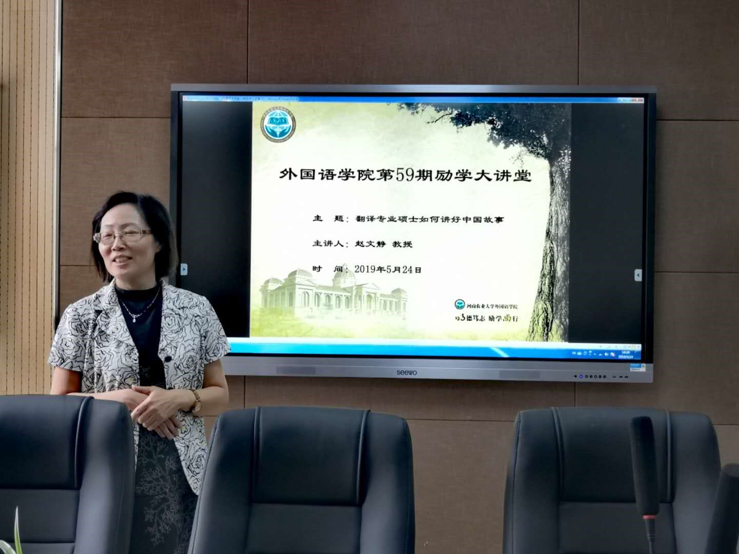 第59期励学大讲堂,为我们做了以“翻译专业硕士如何讲好中国故事”为主题的讲座。