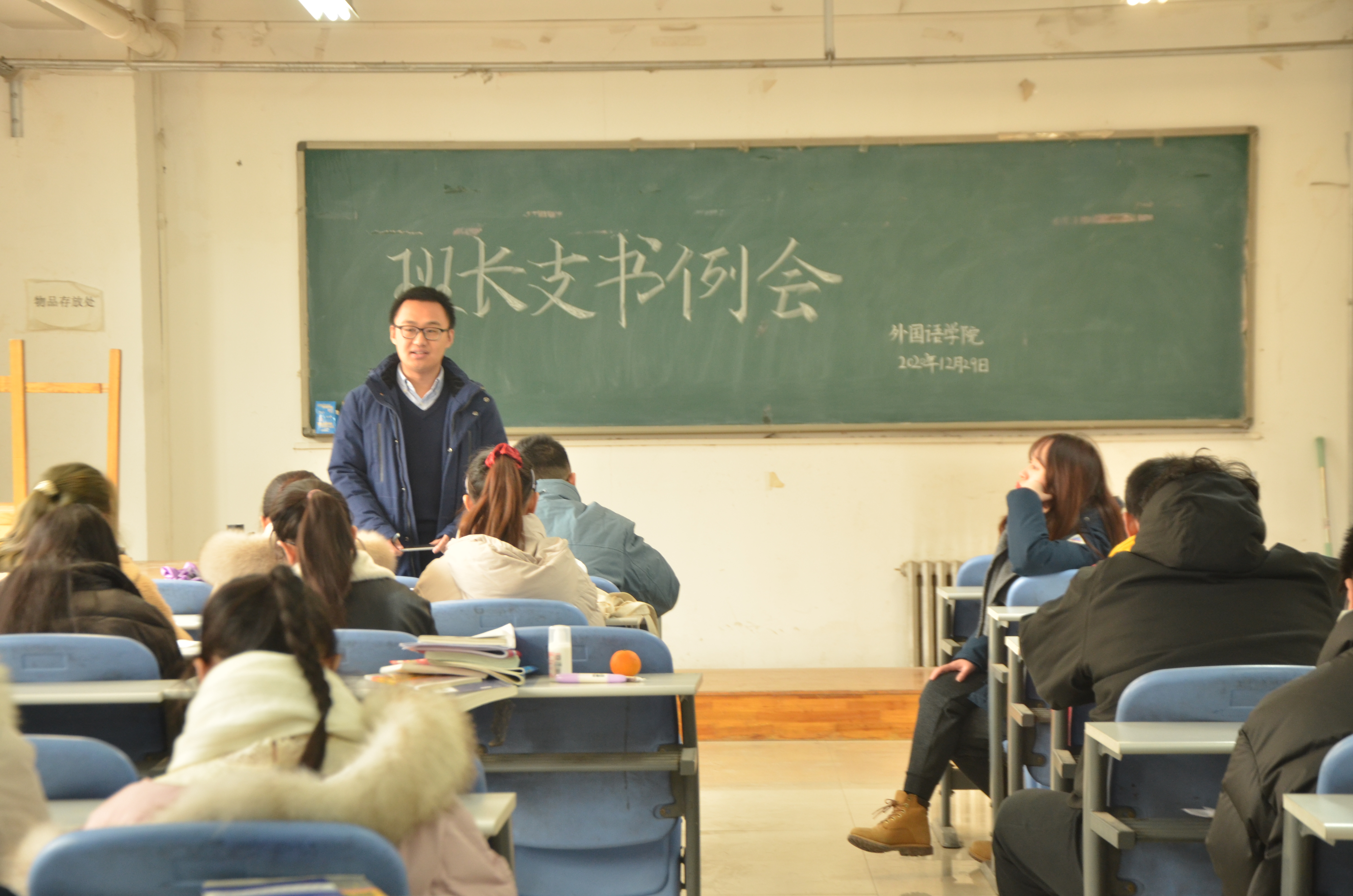 于龙子湖校区海棠园202自习室召开了本学期第十四次班长支书例会。团委副书记冯超、辅导员牛烁携主要学生干部及各班班长支书出席此次例会。
