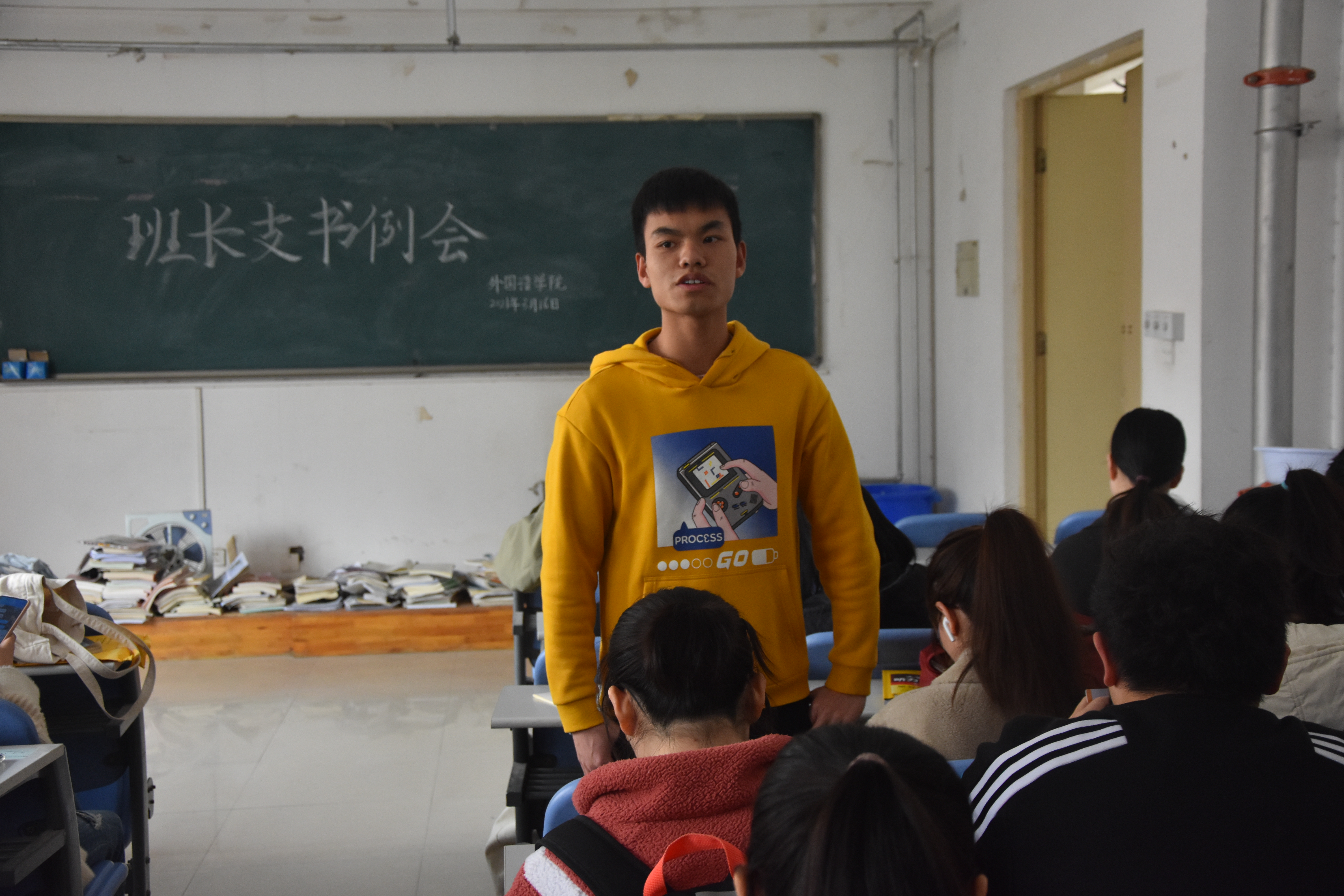 于龙子湖校区海棠园202自习室举办本学期第三次班长支书例会,主要学生干部及各班班长支书参加本次例会。