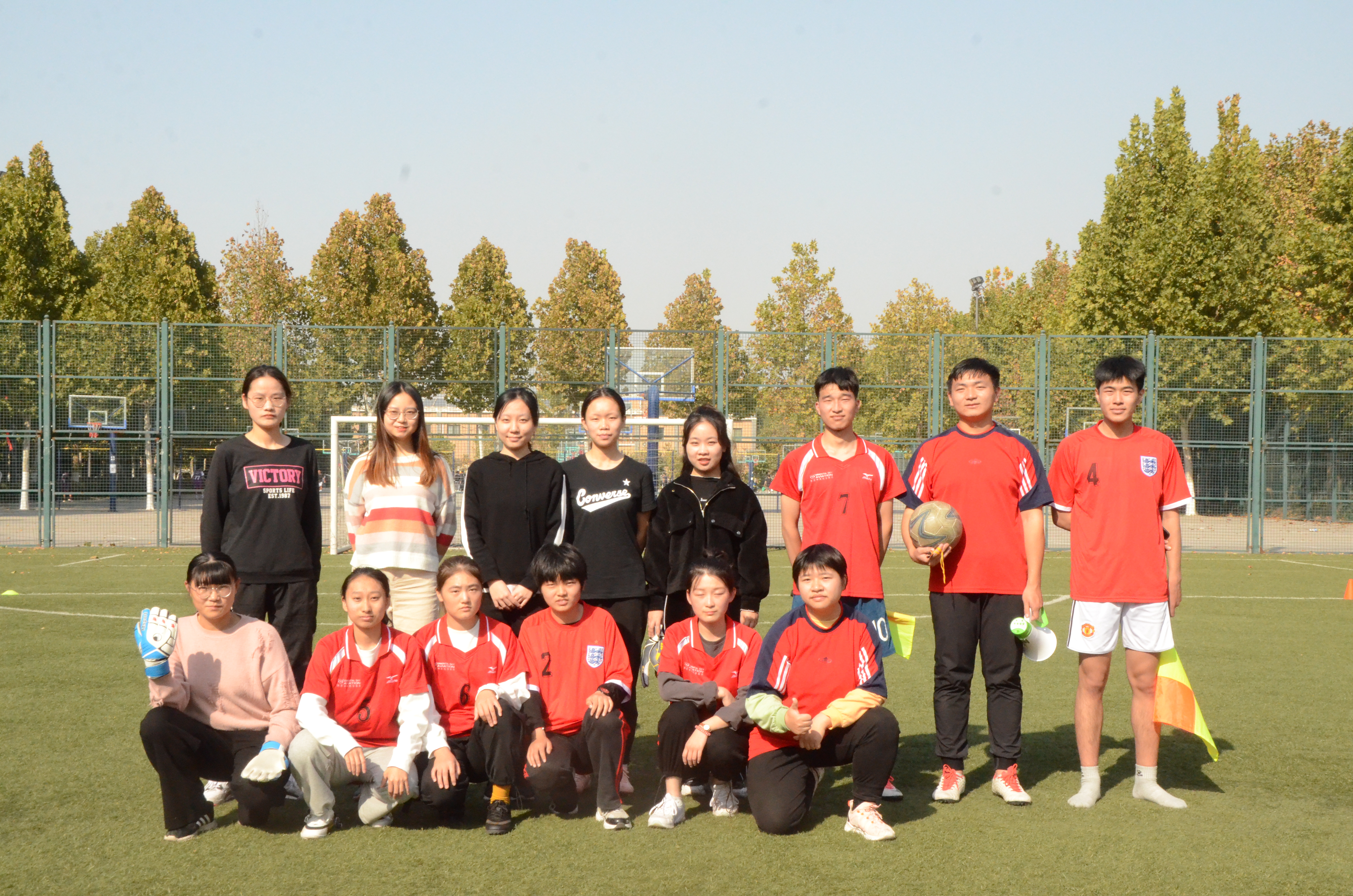于龙子湖校区足球场举办了以"挥洒激情,阳光足球"为主题的男女足球对抗赛。