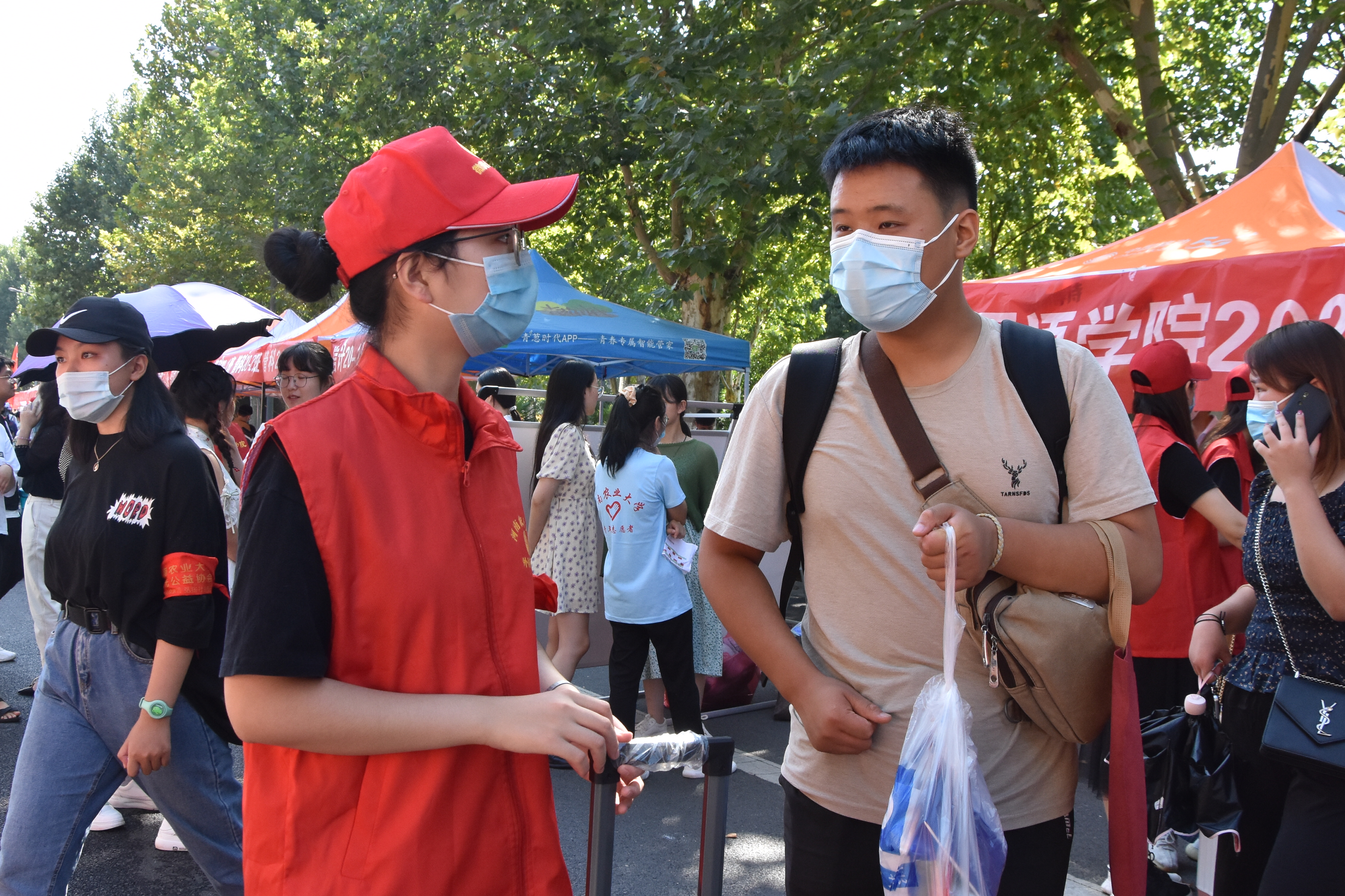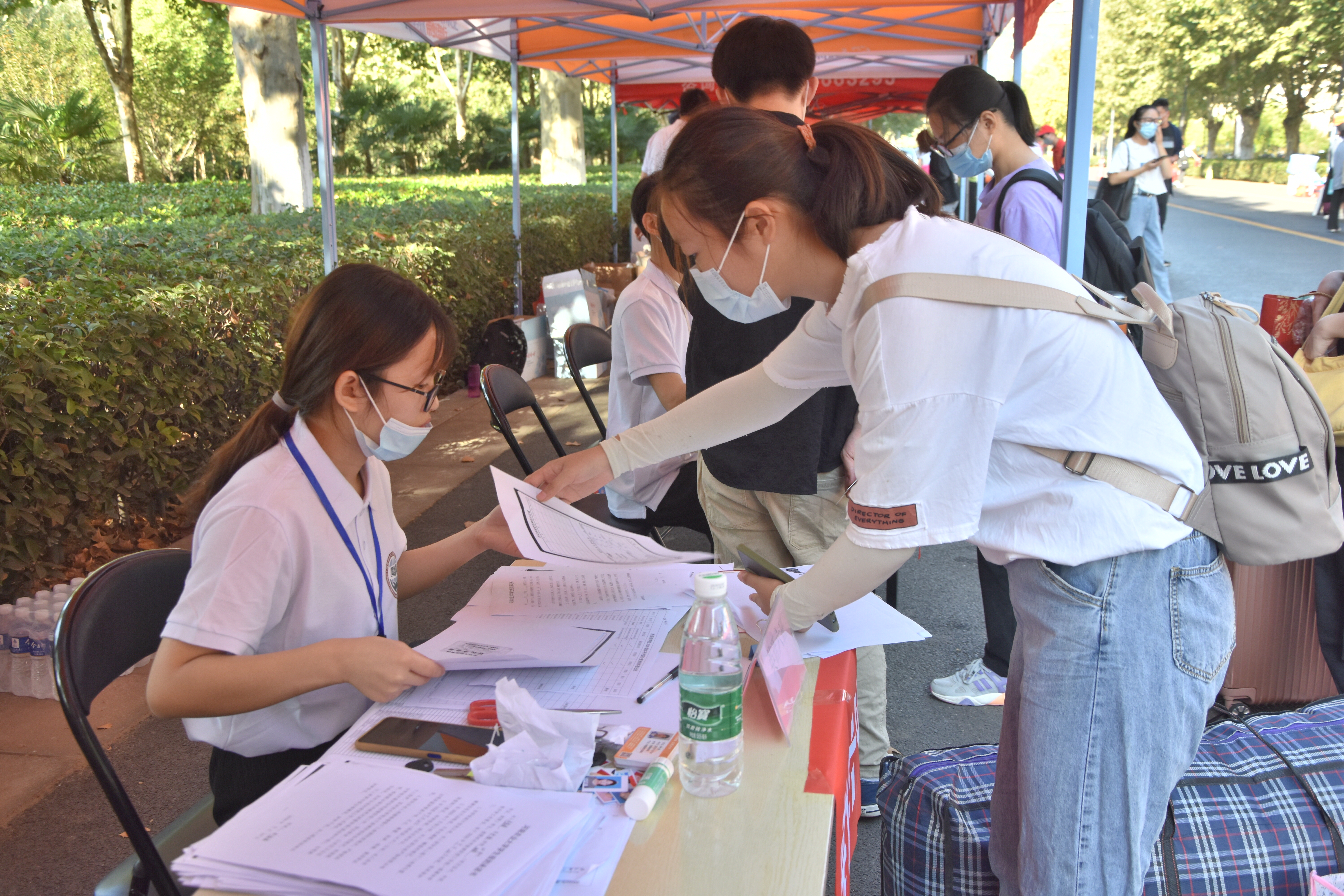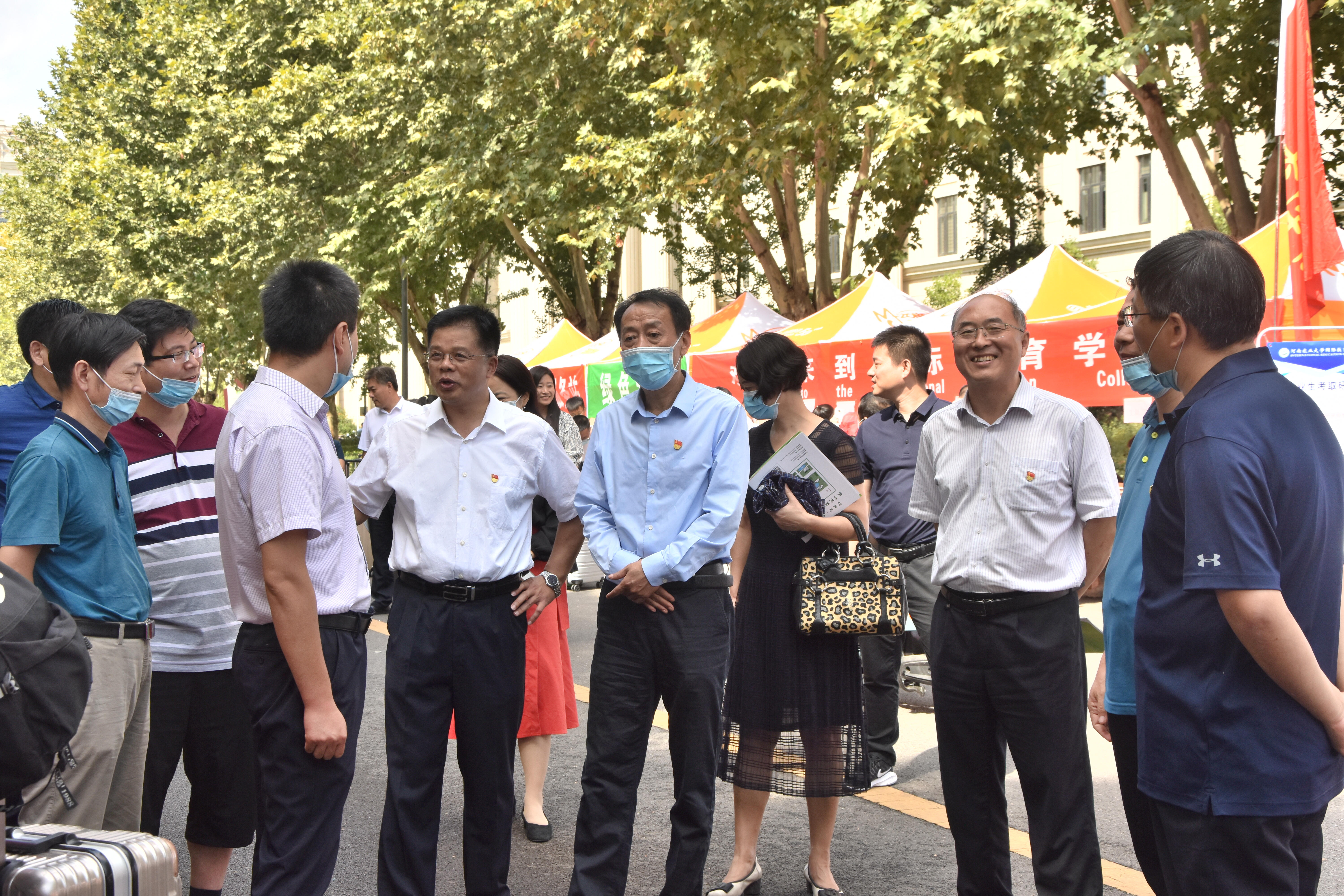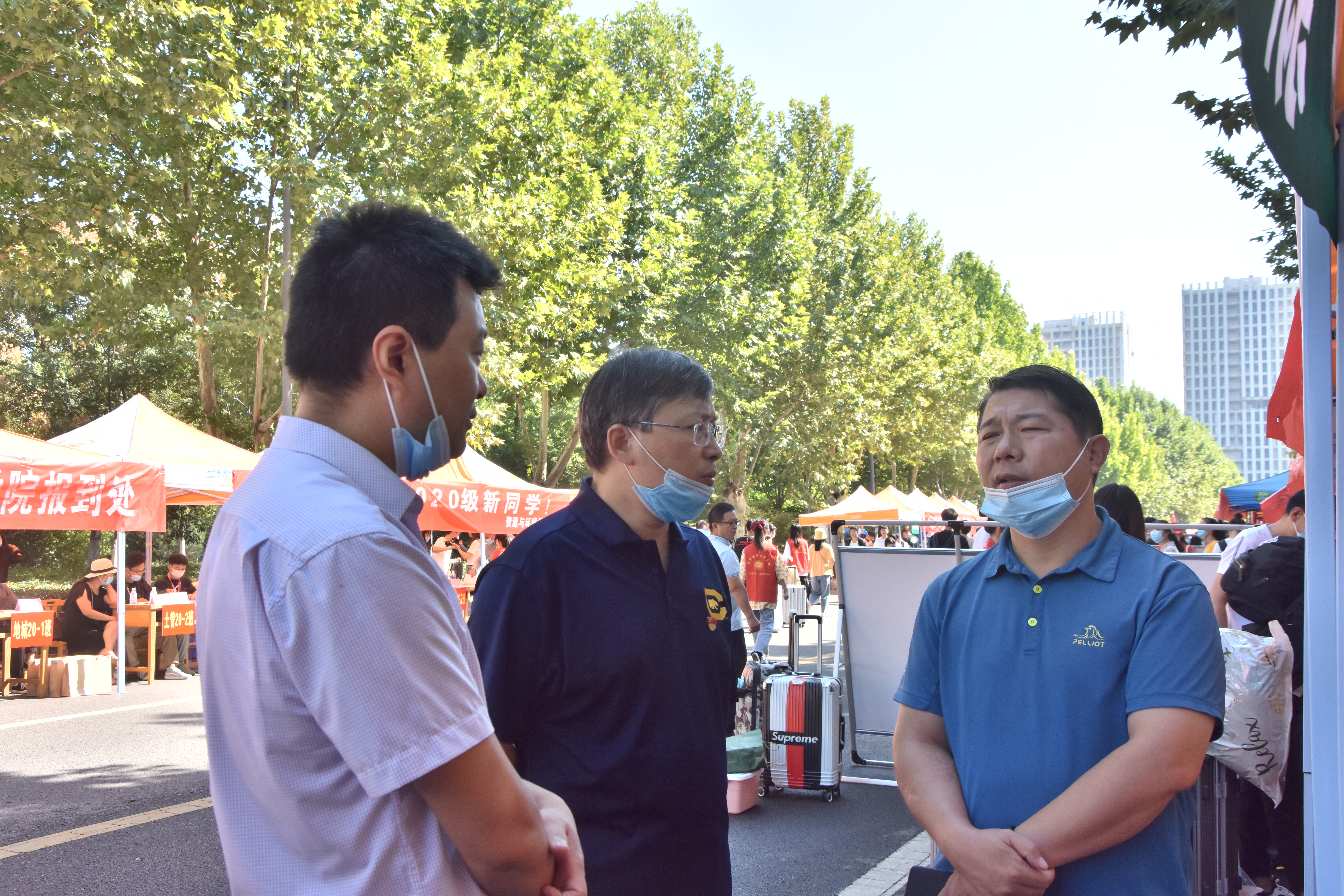 迎新现场,了解并指导学院迎新工作,亲切慰问报到新生和迎新工作人员。