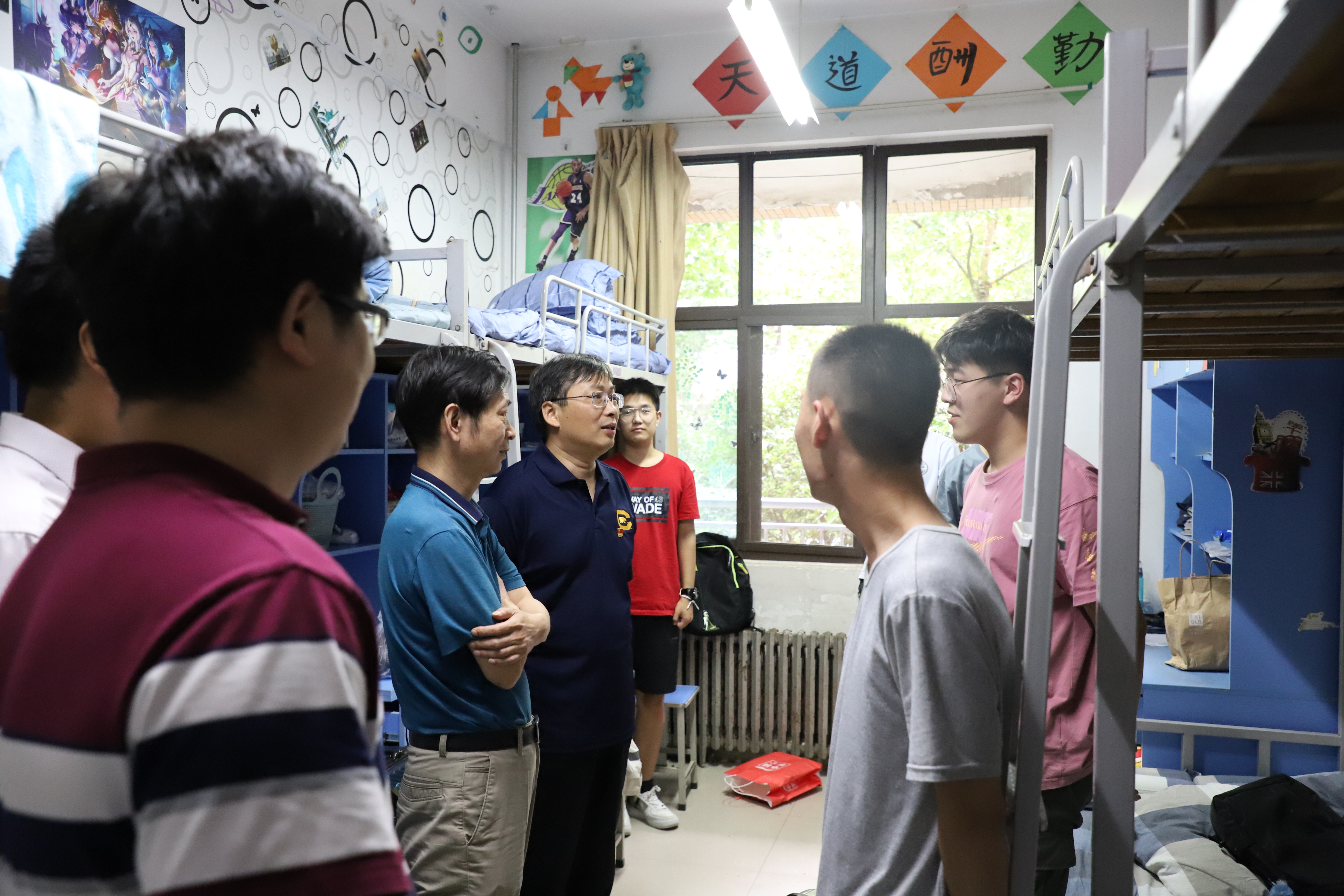本网讯(审稿:李沛 供稿:梅如意)为深入了解新生入学后的生活状况,帮助其尽快适应大学生活,9月20日下午,院长张俊杰教授携院办主任张卫东、院团委书记李沛、院科研秘书马孝幸一起走进2020级新生宿舍,慰问肉漫屋