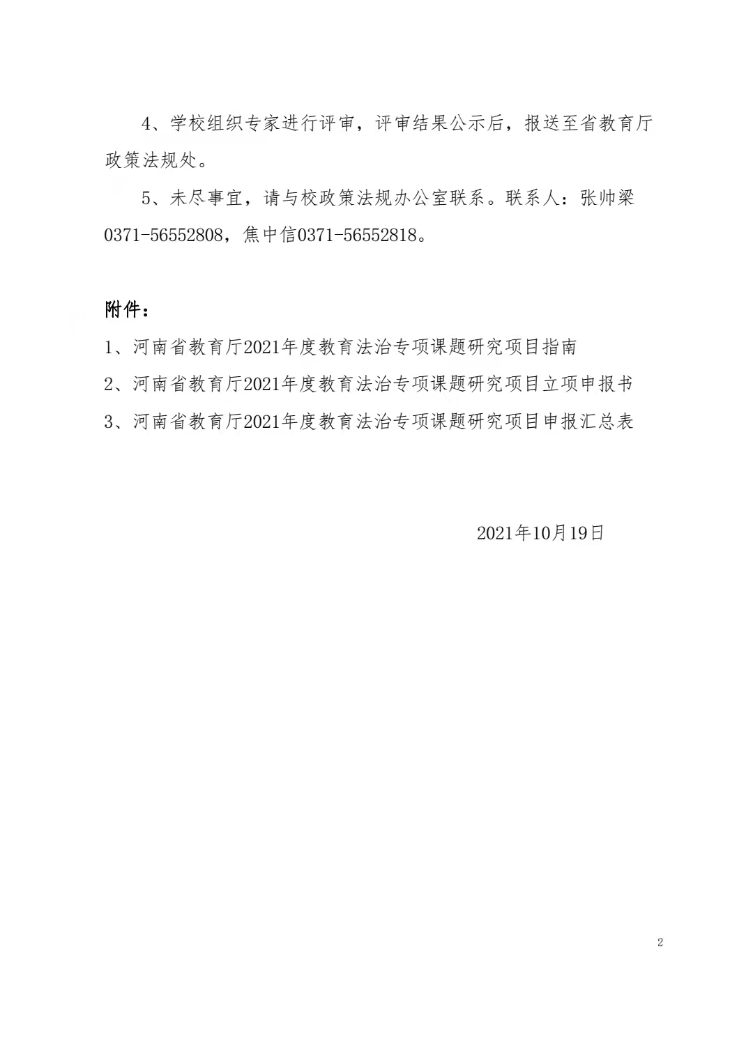 1、河南省教育厅2021年度教育法治专项课题研究项目指南 //rmroom.org/uploads/soft/211020/1_1746515401.pdf(点击下载)