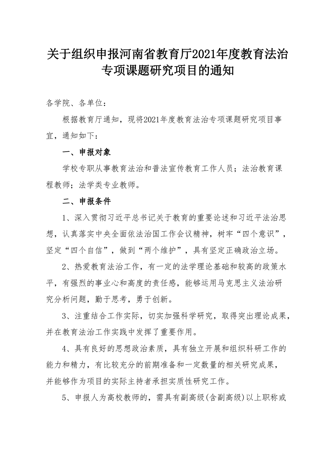 3、河南省教育厅2021年度教育法治专项课题研究项目申报汇总表 //rmroom.org/uploads/soft/211020/1_1745502501.pdf(点击下载)