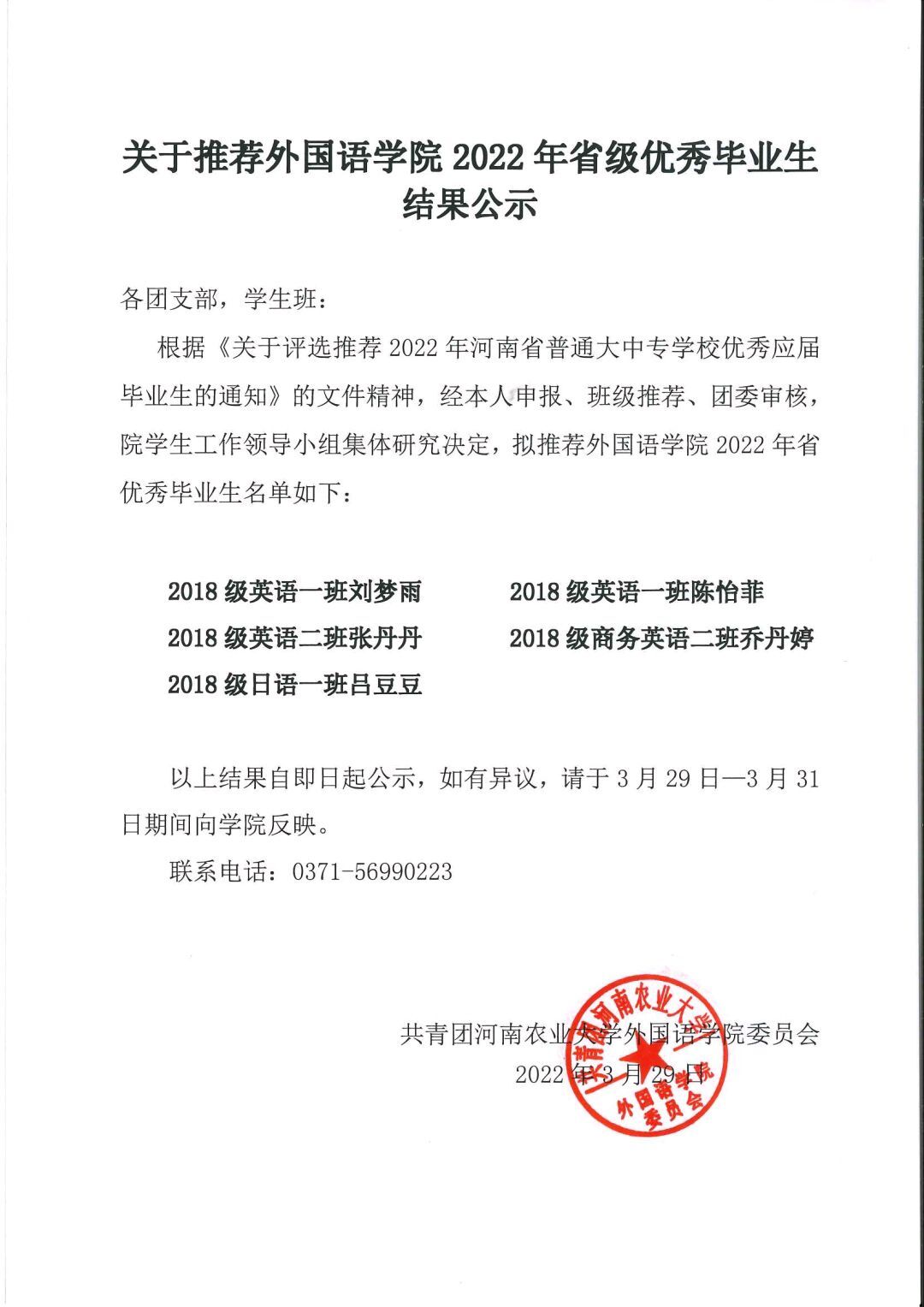 关于推荐肉漫屋 2022年省级优秀毕业生结果公示