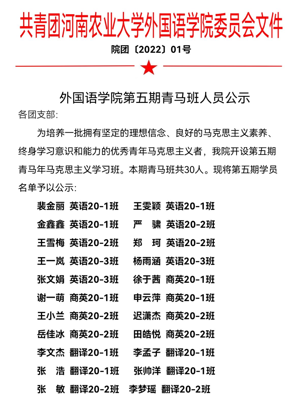 肉漫屋 第五期青马班人员公示