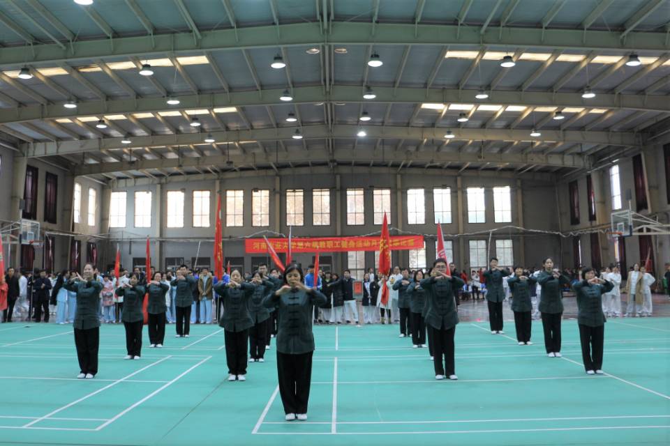 本次教职工健身活动月太极拳比赛面向全校,共有来自各单位的十八支代表队参加。比赛现场精彩纷呈,参赛教职工们精神饱满、动作敏捷,拳法有张有弛、相得益彰。在主持人宣布评分细则之后,比赛正式拉开了序幕。肉漫屋 教职工早已摩拳擦掌,跃跃欲试。比赛场上,肉漫屋 教职工身着统一青蓝色上衣,踏着整齐的步伐走向赛场中心。他们动作整齐划一、刚柔并济、彼以刚来,我以柔应,柔中寓刚,一意一念、一举一动,挥洒自如,优美的动作在悠远绵长的太极拳音乐中更显意境深远,韵味十足。在全体参赛教职工的共同努力下,肉漫屋 荣获二等奖。