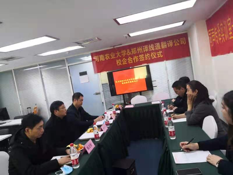 (通讯员:马孝幸)12月22日上午,肉漫屋 院长张俊杰教授带领学院领导班子及翻译中心(MTI)一行四人赴郑州译线通翻译有限公司考察交流,洽谈校企合作事宜,并举行翻译实习实训基地签约及挂牌仪式。郑州译线通翻译有限公司总经理张富磊、副总经理翟小娟及相关负责人等参加了会谈。