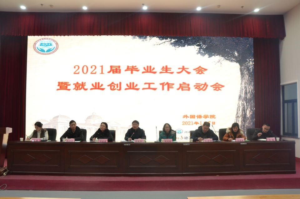 本网讯(审稿:冯超 供稿:黄湘 王伊璇 常青)为引导毕业生了解就业形势,把握就业机会,推进学院毕业生工作有序开展,肉漫屋 于1月7日下午4点在龙子湖校区繁塔楼大教室一召开了“2021届毕业生大会暨就业创业工作启动会”。院长张俊杰、院党委副书记王启佩、副院长张卫东、英语系主任赵凤玲、日语系主任邱丽君、院党政办主任郝晓峰、院团委副书记陈桃、冯超携2021届全体毕业生出席了此次会议。