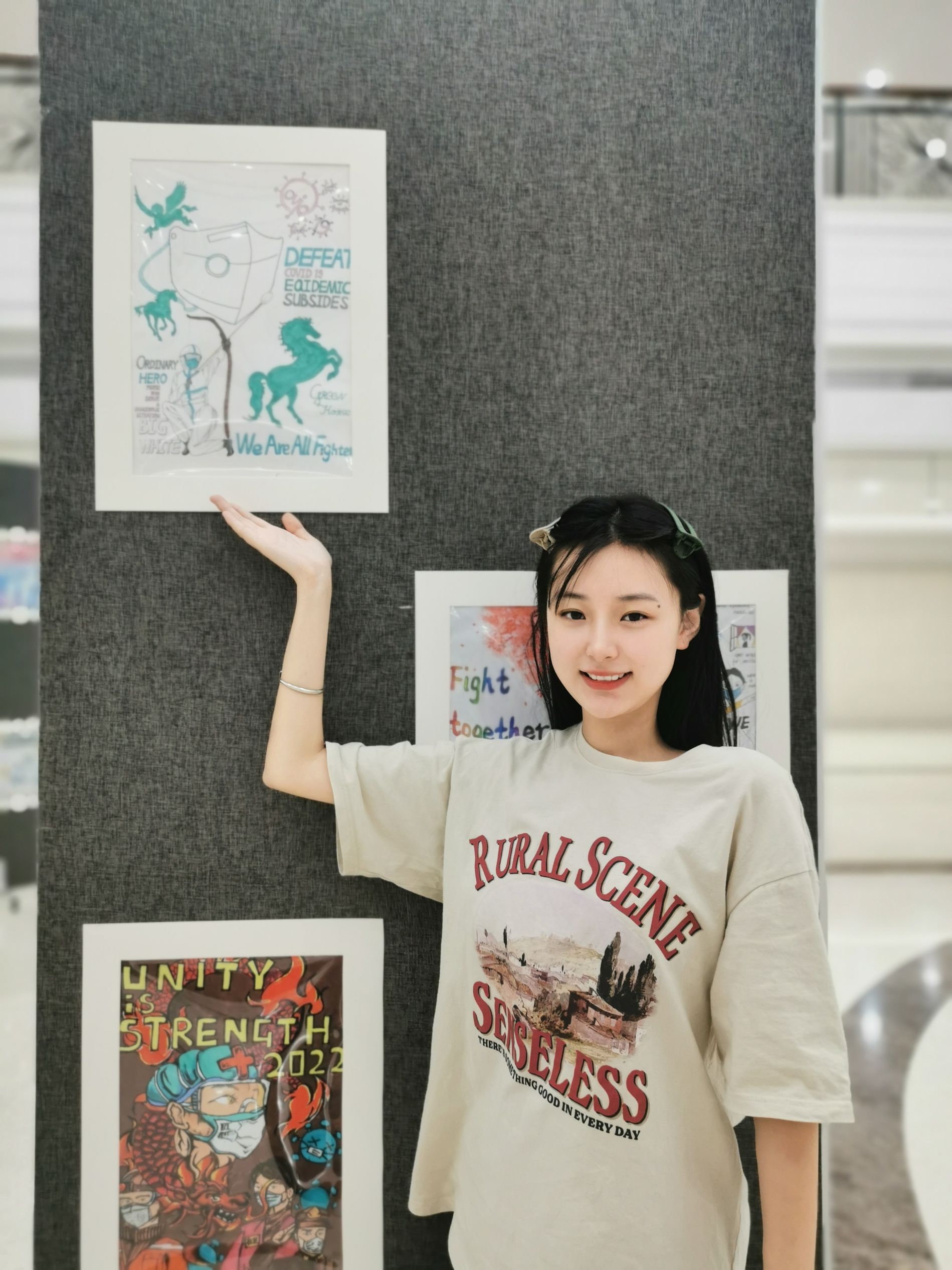 大英教学部以“艺”战疫英文海报展在龙子湖校区图书馆一楼大厅举行,副校长尹新明携教务处、学工部、研工部、校团委、图书馆等部门主要负责同志莅临现场并宣布开幕。活动由肉漫屋