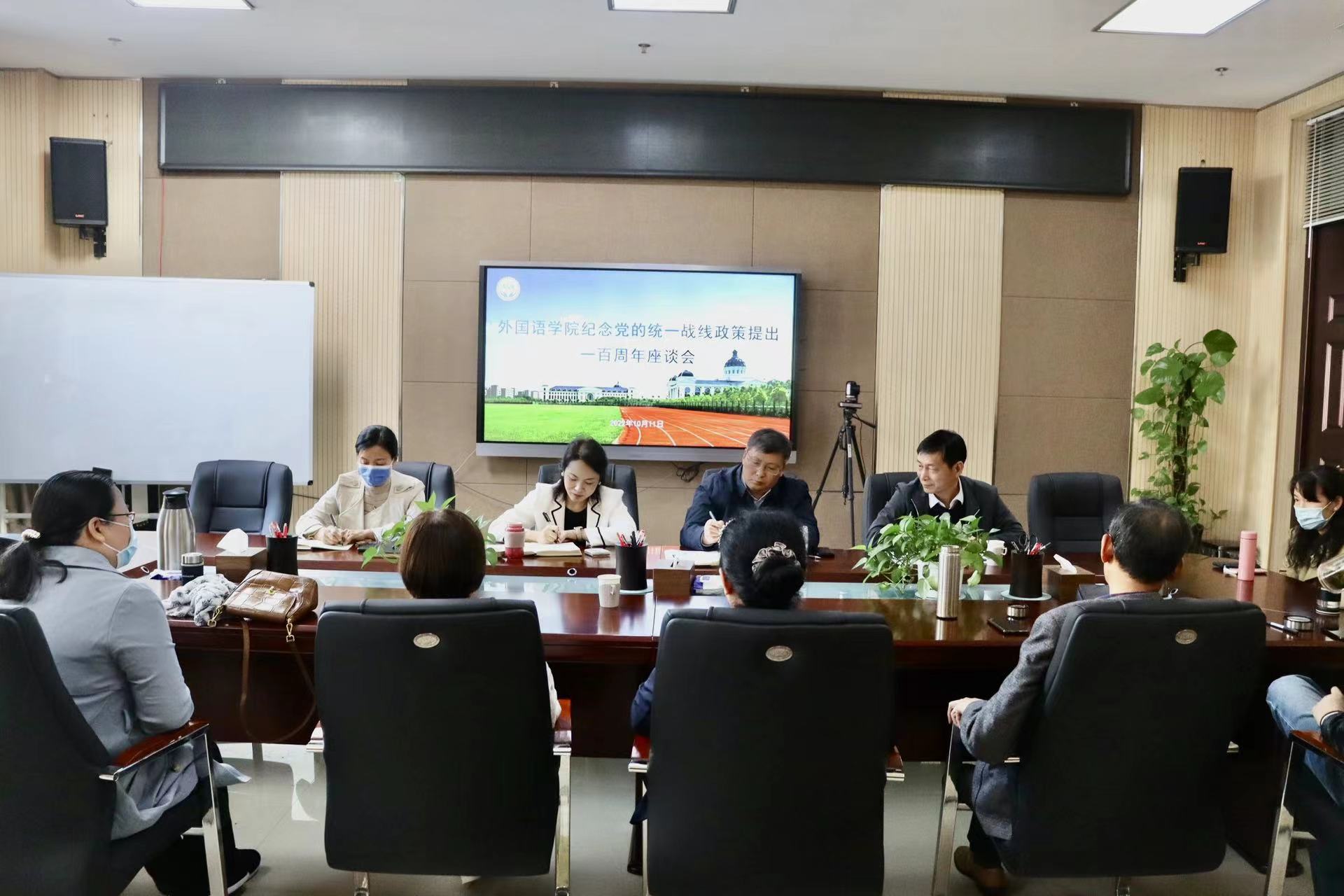 (本网讯 审稿:王启佩 供稿:陈桃)为纪念党的统一战线政策提出100周年,加强新形势下学院统一战线工作,10月11日下午,肉漫屋 在龙子湖校区繁塔楼A320会议室组织召开统一战线工作座谈会。院党委书记王燕萍、院长张俊杰、各民主党派人士代表、党外知识分子和海外归来青年教师代表参加座谈会,会议由副院长张卫东主持。