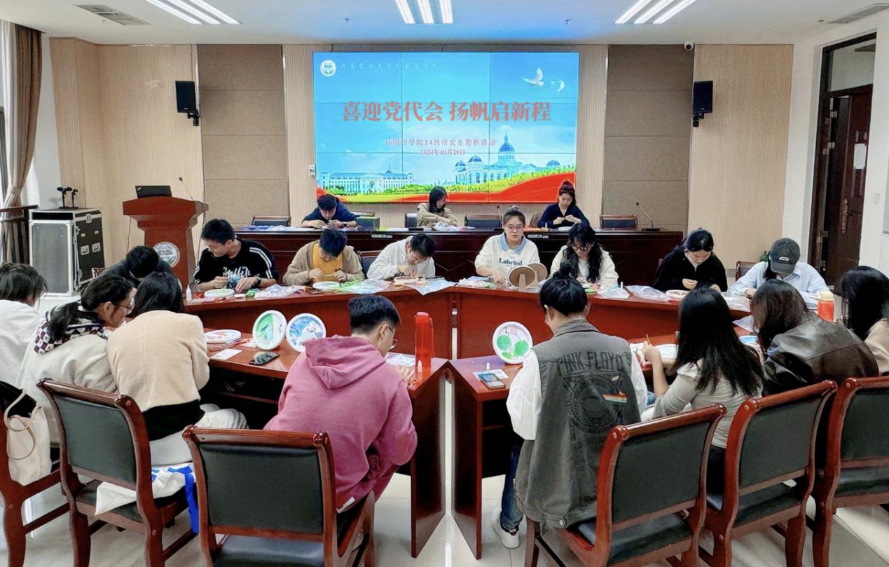 于繁塔楼A324举办“喜迎党代会 扬帆启新程”研究生迎新主题活动,研究生辅导员薛杰及学院全体MTI研究生参加活动。