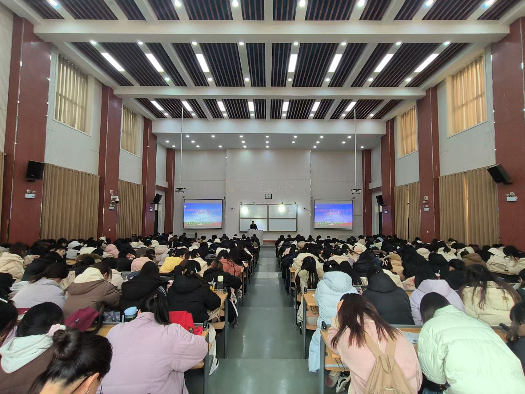 于龙子湖校区大教室5召开2025届毕业生就业创业工作启动大会暨实习动员会。院党委副书记杨鑫、副院长吴玲出席会议,各系部室主任、副主任、毕业生班主任、辅导员、2025届全体研究生、本科毕业生参加会议。会议由院团委书记冯超主持。
