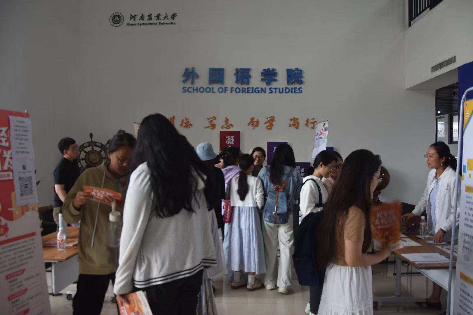 于龙子湖校区繁塔楼A座3楼举办毕业生就业双选会。本次双选会吸引了郑州经开区致远中学、大山外语等优质企业参与,学院2025届毕业生积极参加双选会。