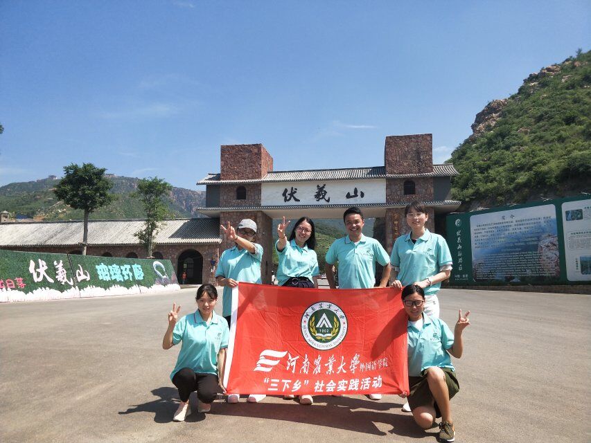 7月3日,团队成员到达考察地点,进行实地考察。伏羲山大峡谷坐落于新密市西北20公里的伏羲山山区,是国家AAAA级景区,是一条以典型的红岩嶂谷群地质地貌景观为主的峡谷景区,景区气候温润,四季分明,以伏羲文化和红石大峡谷为主要特色。卧龙台、文化隧道、望乡台、八卦台、万年栗、栗仙神祠、女娲补天处、神龟折足、五色石等景点,全面反映了伏羲文化的形成、发展、传播以及对后世的影响。黄龙潭、黄龙庙、簸萁潭、立龙锅潭等景点峡谷风光无限,令人不得不惊叹大自然的鬼斧神工。但伏羲大峡谷的整体开发情况并不完备,有些基础设施仍需改进。