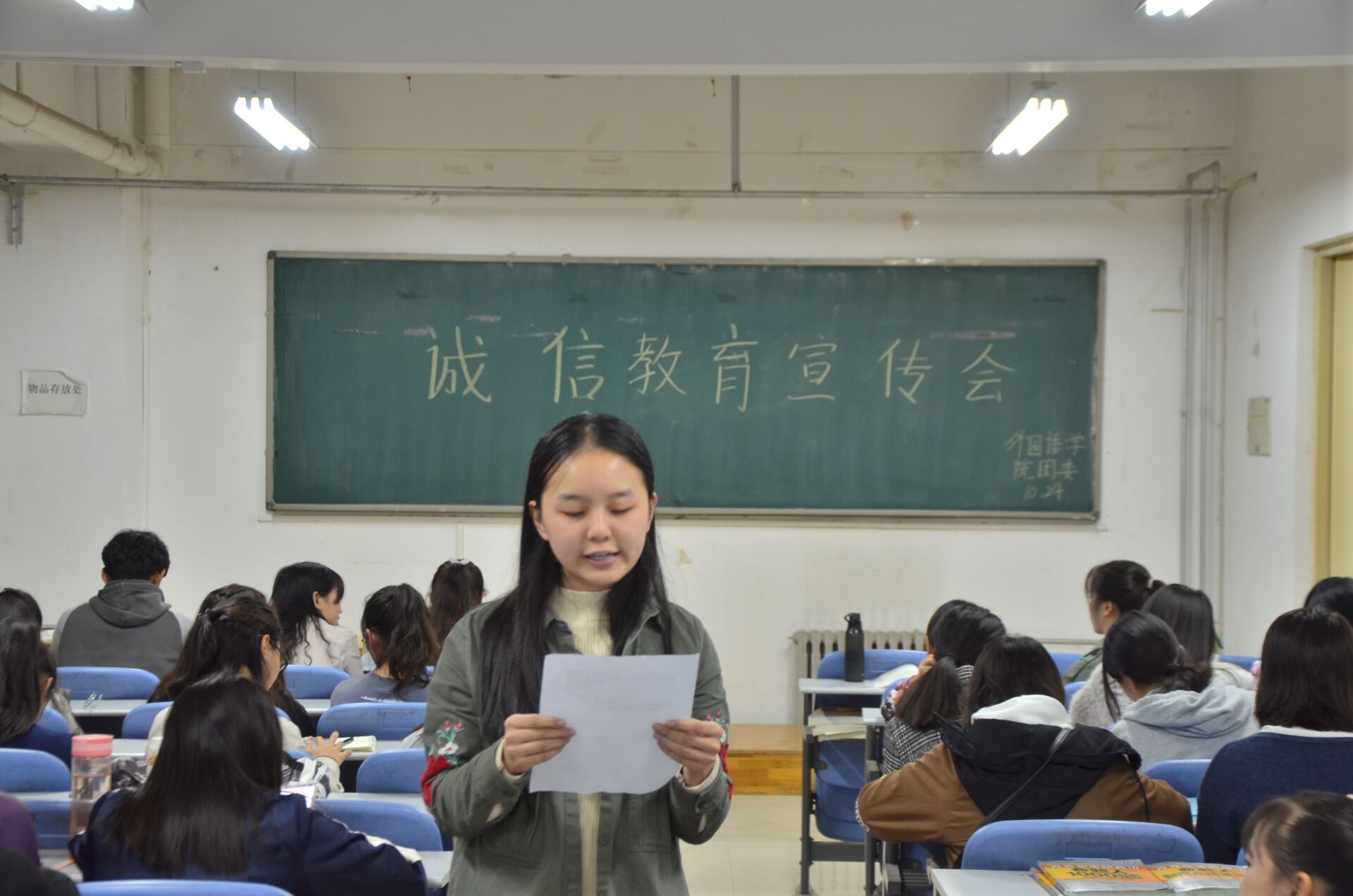 会议伊始,由往届提前还款毕业生代表率先发言。该同学重点讲解了助学贷款和诚信还款两方面的内容,同时强调国家助学贷款是政府针对普通高校贫困家庭所施行的一项重大举措,因此贷款学生要按期还款,诚实守信,促进助学贷款工作的良性发展。随后,勤工部李歌畅就助学贷款种类、逾期未还后果等多个方面向在座学生普及国家诚信贷款及资助政策等知识。随后,各班出席人员纷纷发表诚信贷款感想:“作为毕业班学生,我一定会及时还款,让国家能够更好地资助高校在校生。”“诚信是立人之本,因此合理利用助学贷款和及时还款是我们应该铭记的责任。”最后,勤工部随即进行了诚信贷款及资助政策相关知识竞赛,让大家在竞赛中学习资助政策,接受诚信教育。